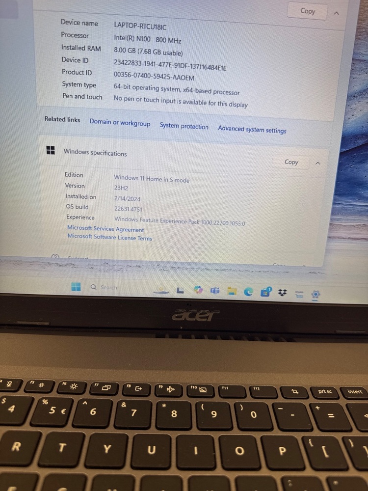 ACER A317 LAPTOP / 17 INCH / INTEL N100 800MHz / 8GB RAM / 128GB HD / WIN11 / CHARGER