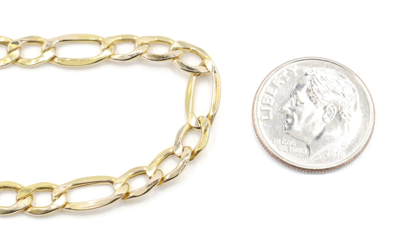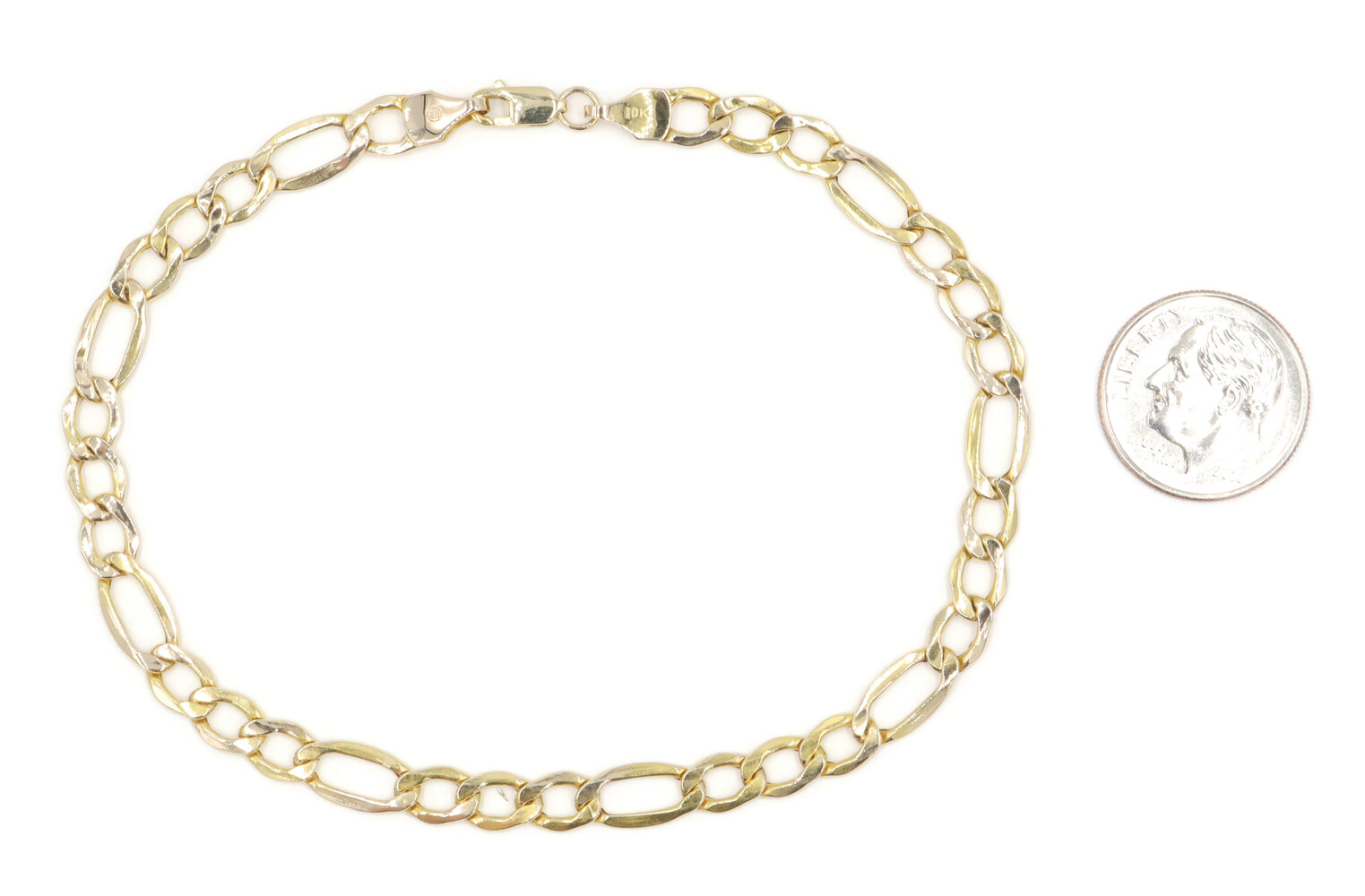 Air Solid 10KT Yellow Gold 5.4mm Classic Figaro Chain Bracelet 8 3/4" Italy 2.2g | USA Pawn