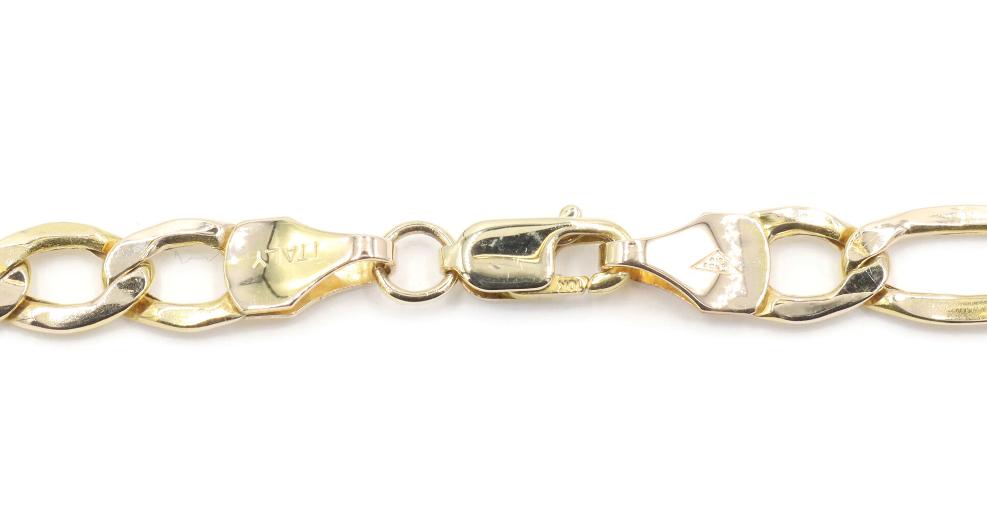 Air Solid 10KT Yellow Gold 5.4mm Classic Figaro Chain Bracelet 8 3/4" Italy 2.2g
