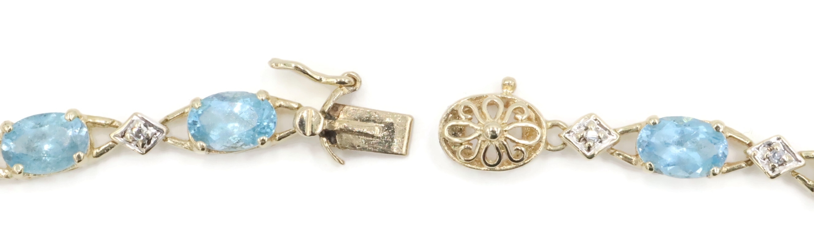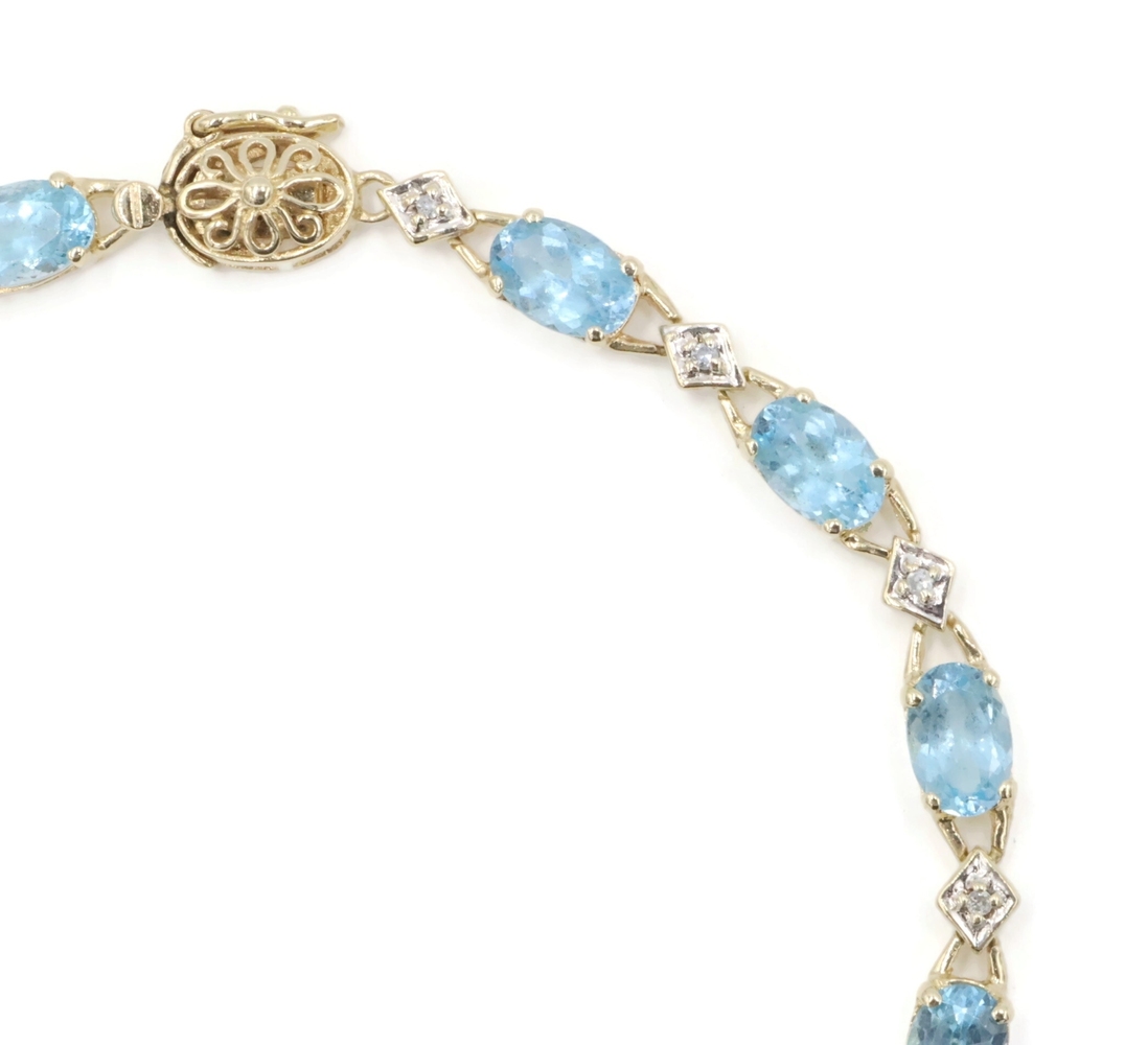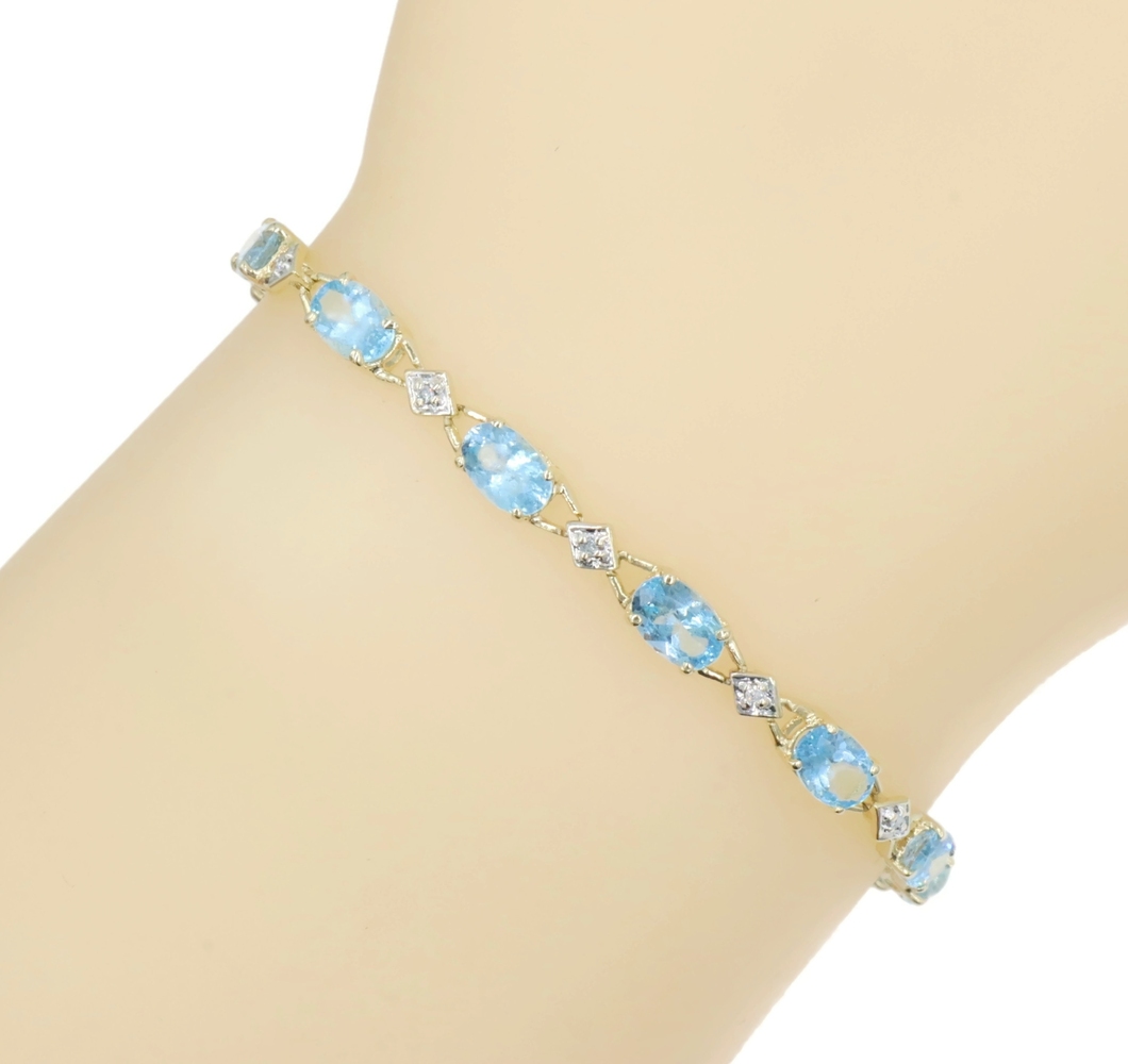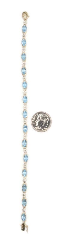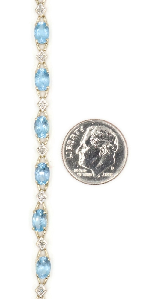 Alternating 5.30 Ctw Blue Topaz & Round Diamond 10KT Gold Tennis Bracelet 7.5". This bracelet is approximately 7 1/2 inches in length and 4.1mm in width.