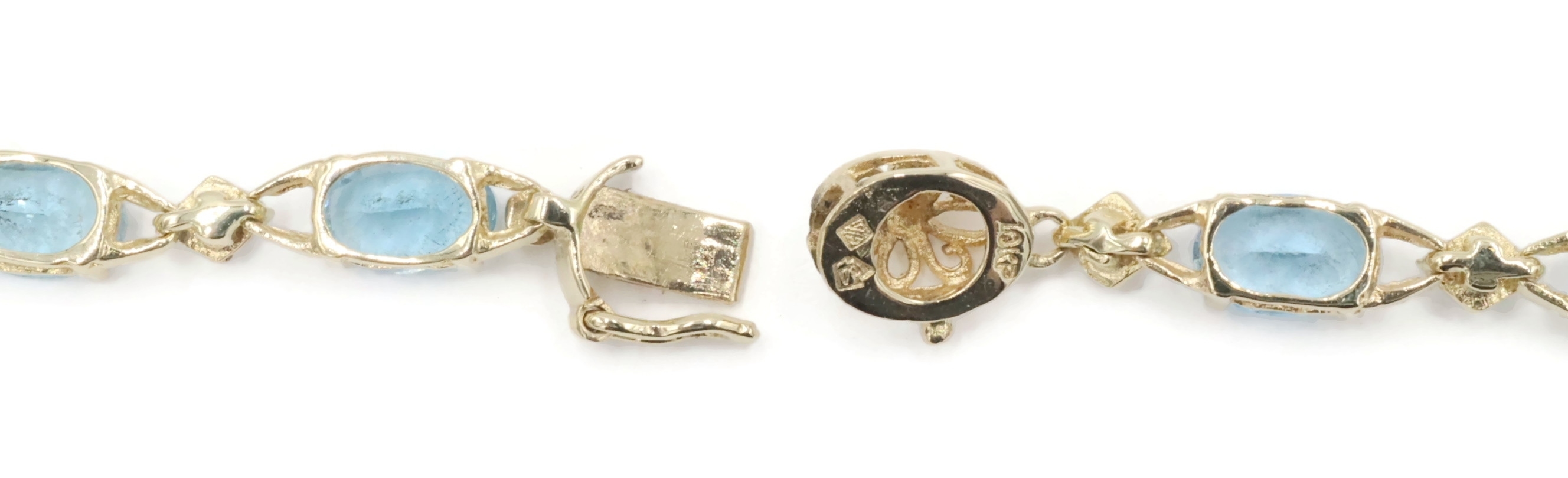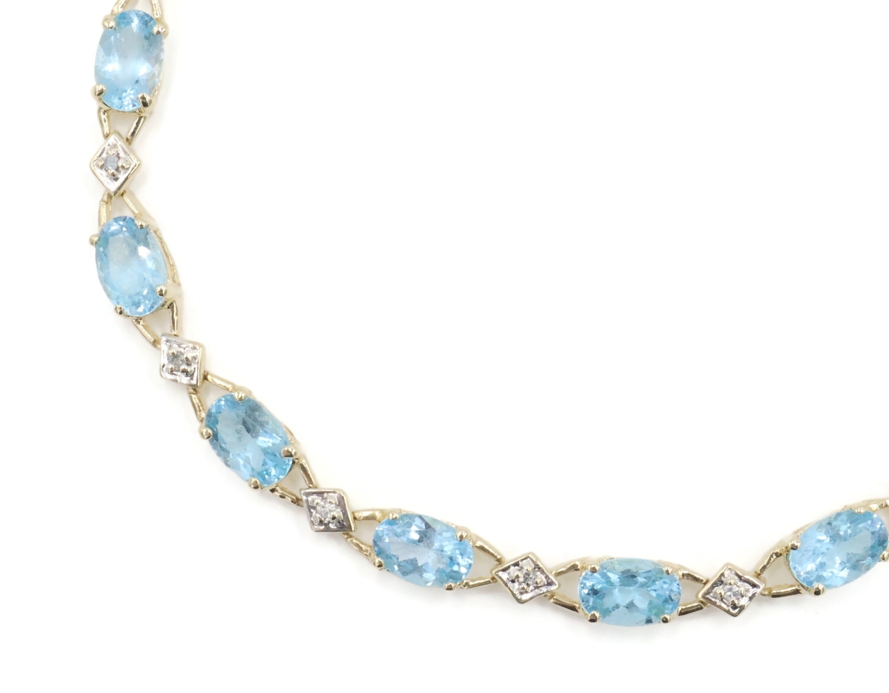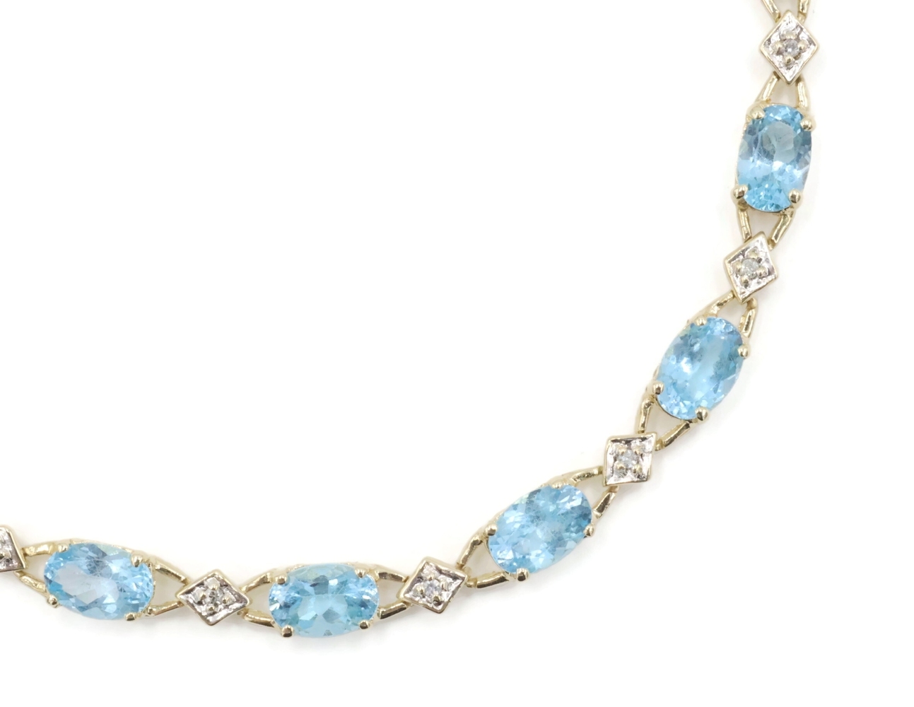 Alternating 5.30 Ctw Blue Topaz & Round Diamond 10KT Gold Tennis Bracelet 7.5". This bracelet is approximately 7 1/2 inches in length and 4.1mm in width.