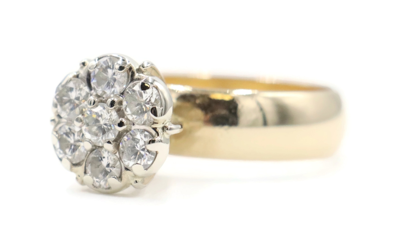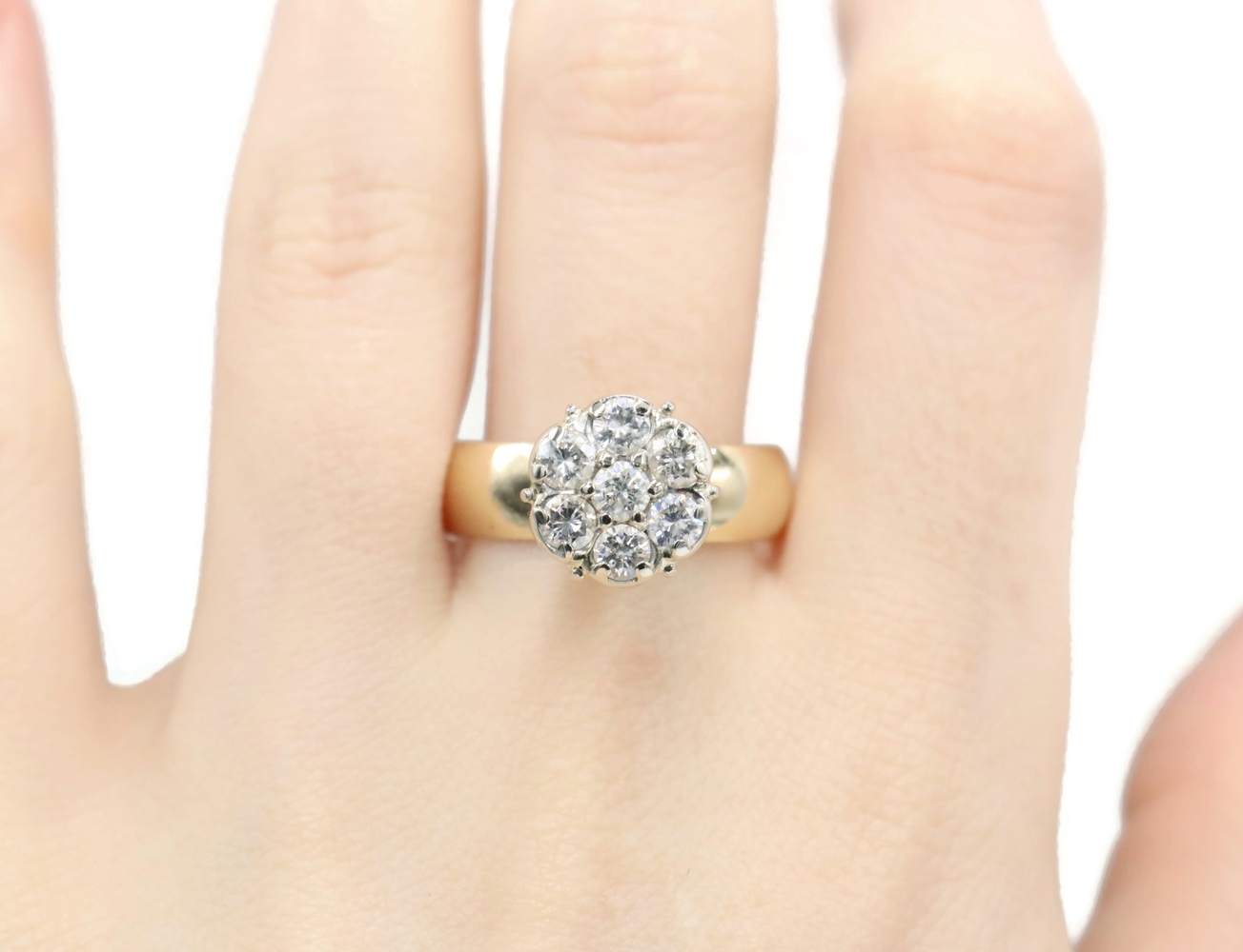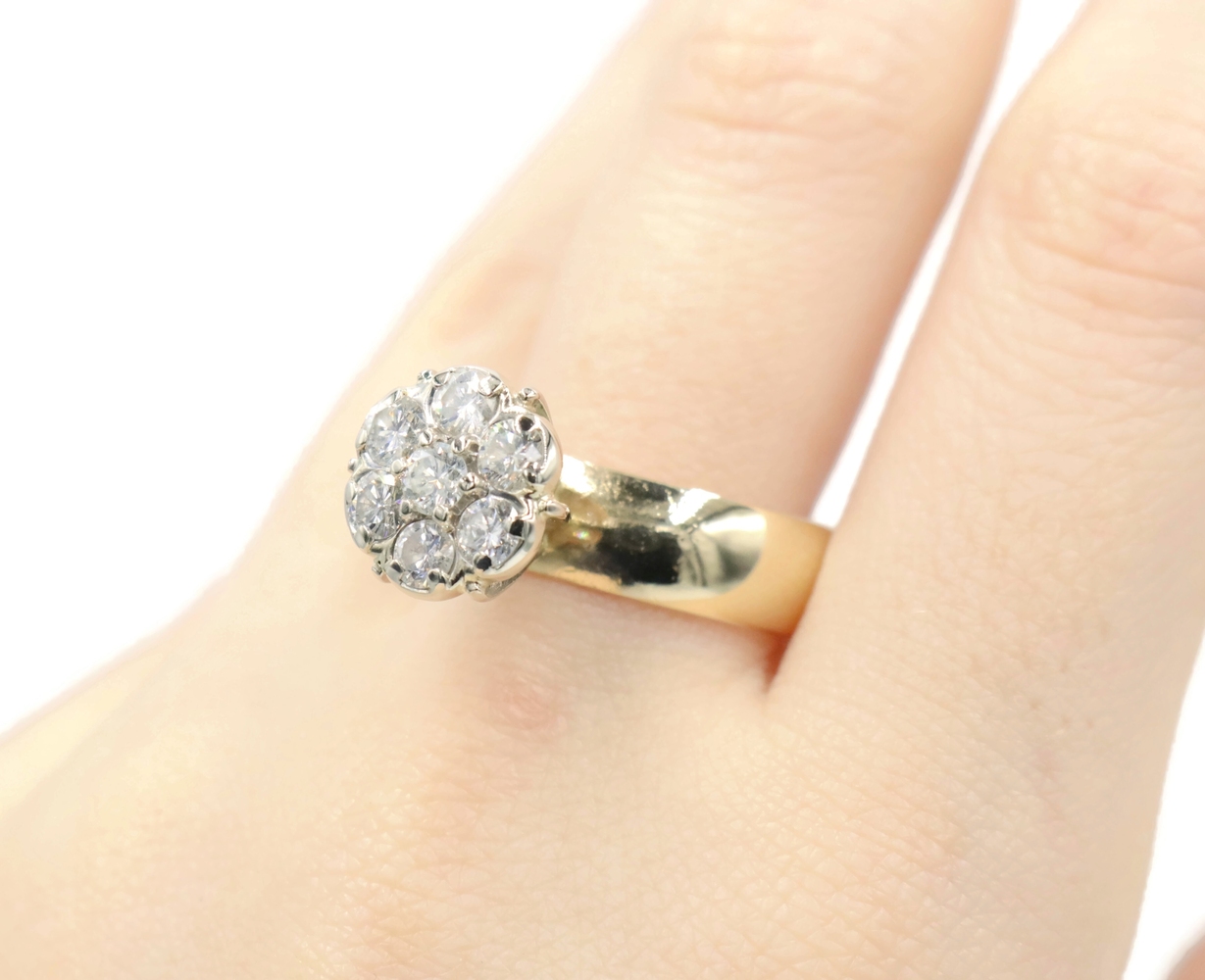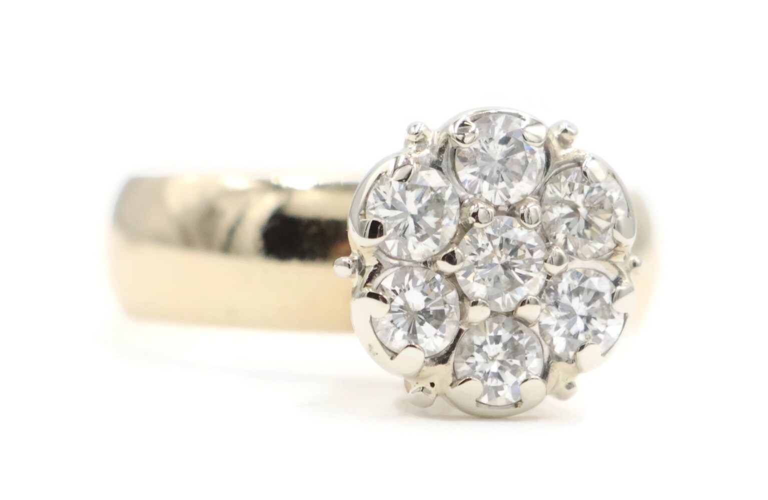 ArtCarved 1.18 Ctw Round Diamond 14KT Yellow Gold Round Flower Cluster Ring 7.5g | USA Pawn