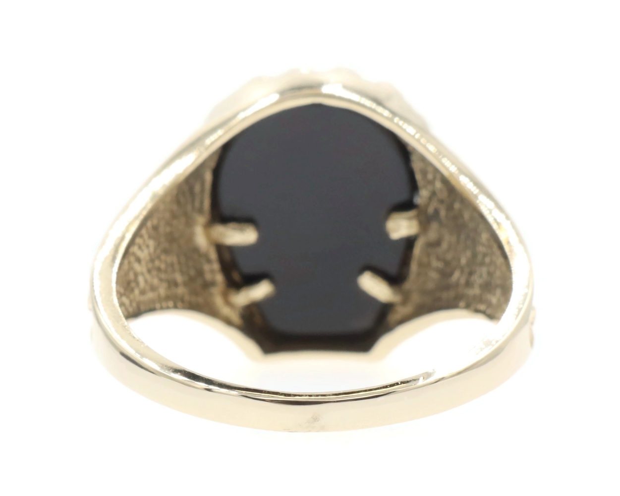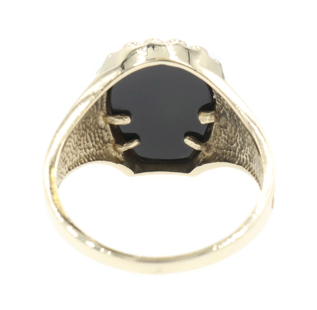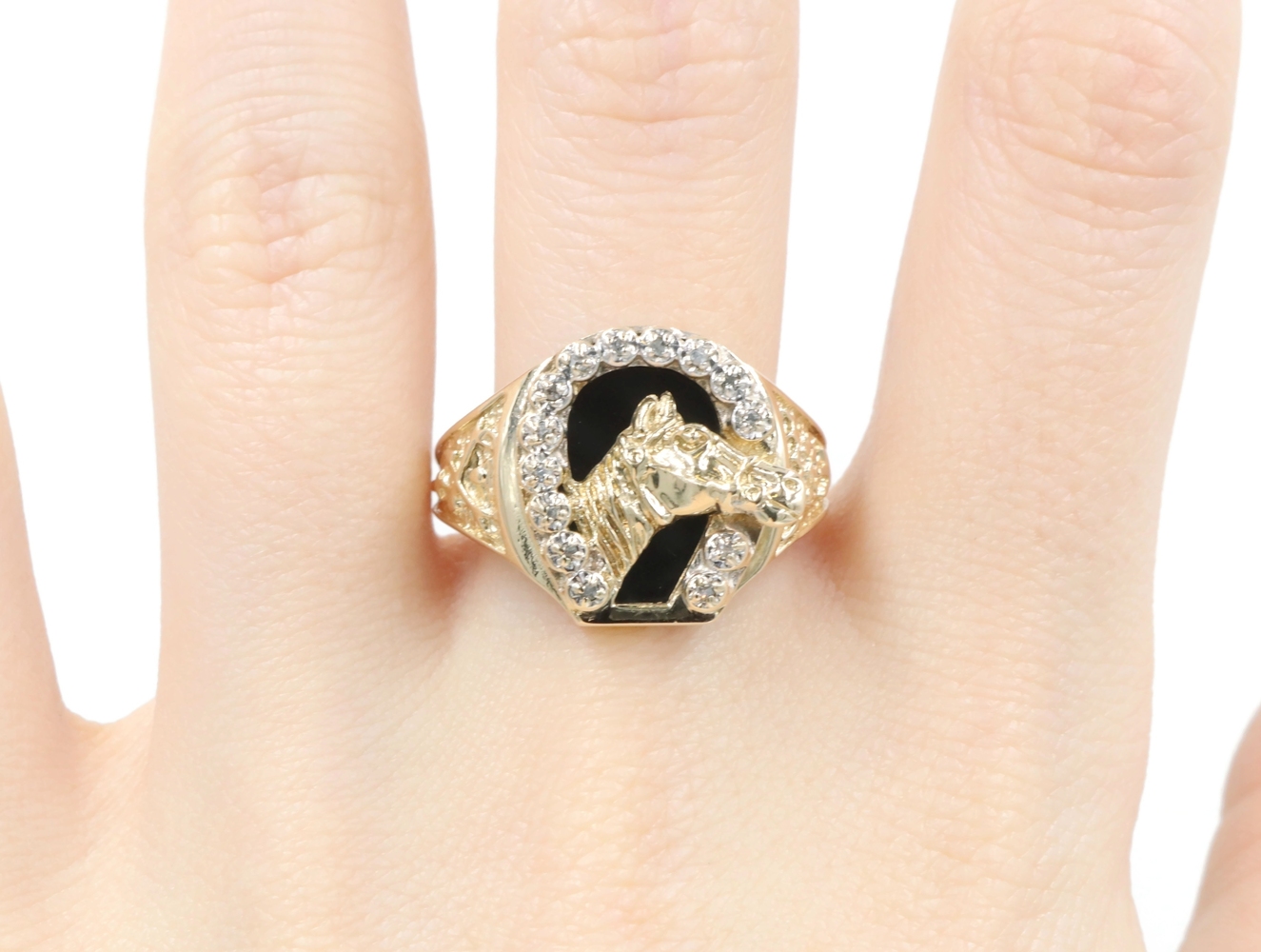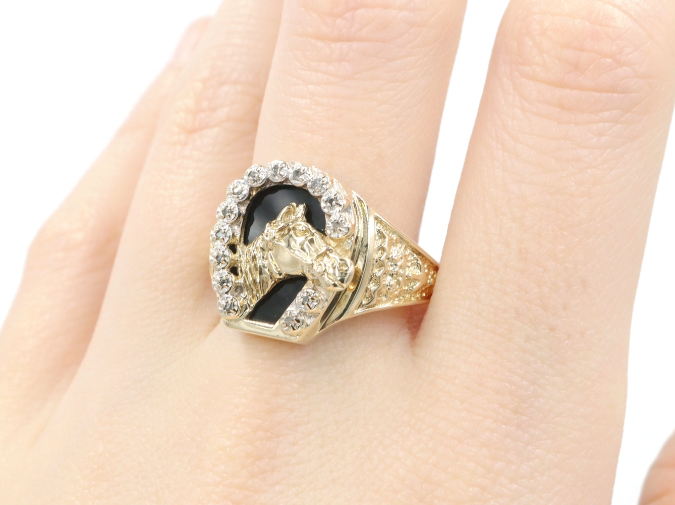 Black Onyx Inlay & 0.08 Ctw Round Diamond 10KT Yellow Gold Horseshoe Ring 6.18g | USA Pawn