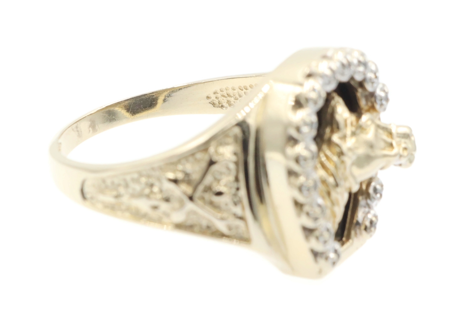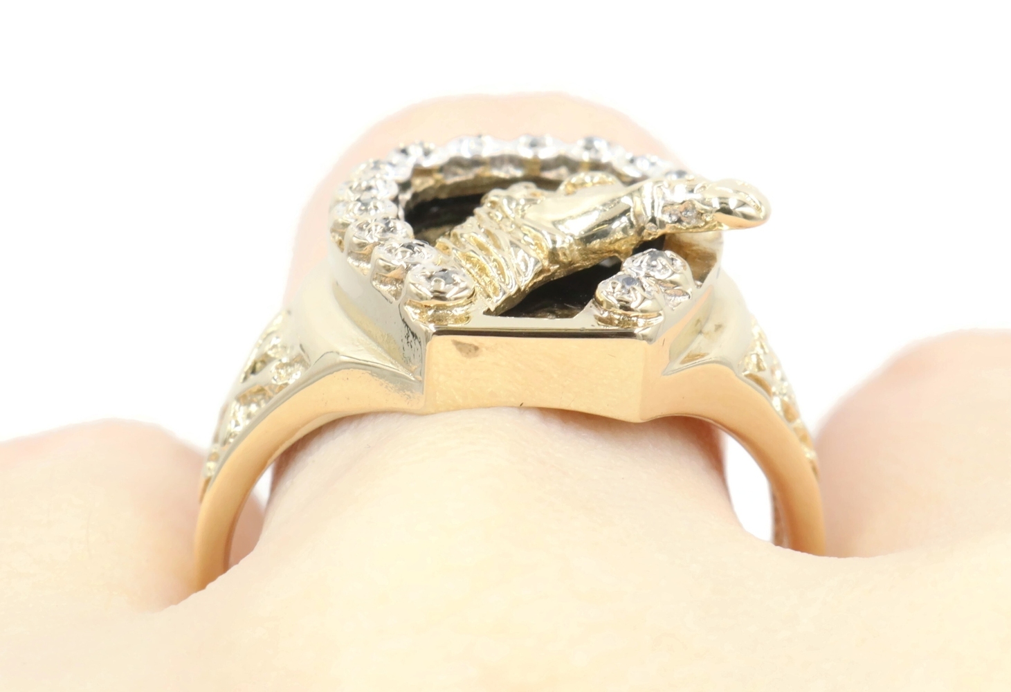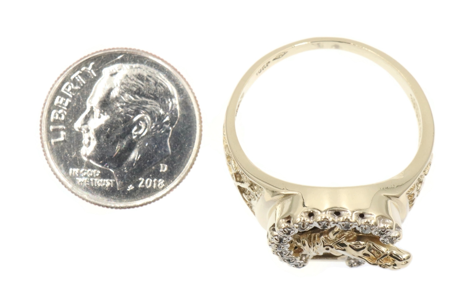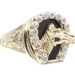 Black Onyx Inlay & 0.08 Ctw Round Diamond 10KT Yellow Gold Horseshoe Ring 6.18g | USA Pawn