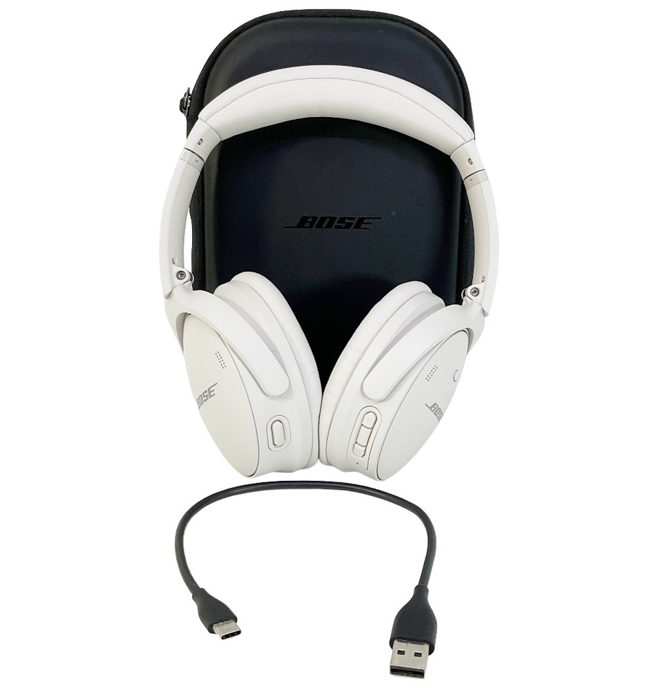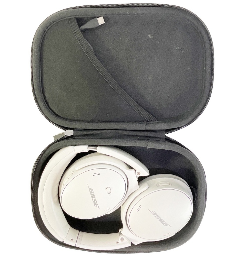 Bose Model 437310 QuietComfort 45 Noise Canceling Bluetooth Headphones (White Smoke) With Case and Charging Cord
