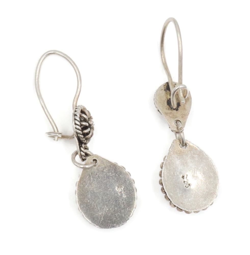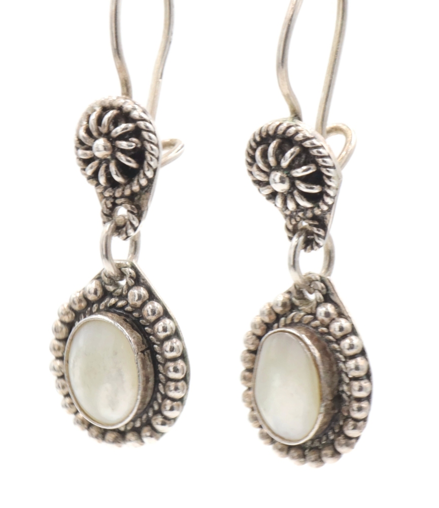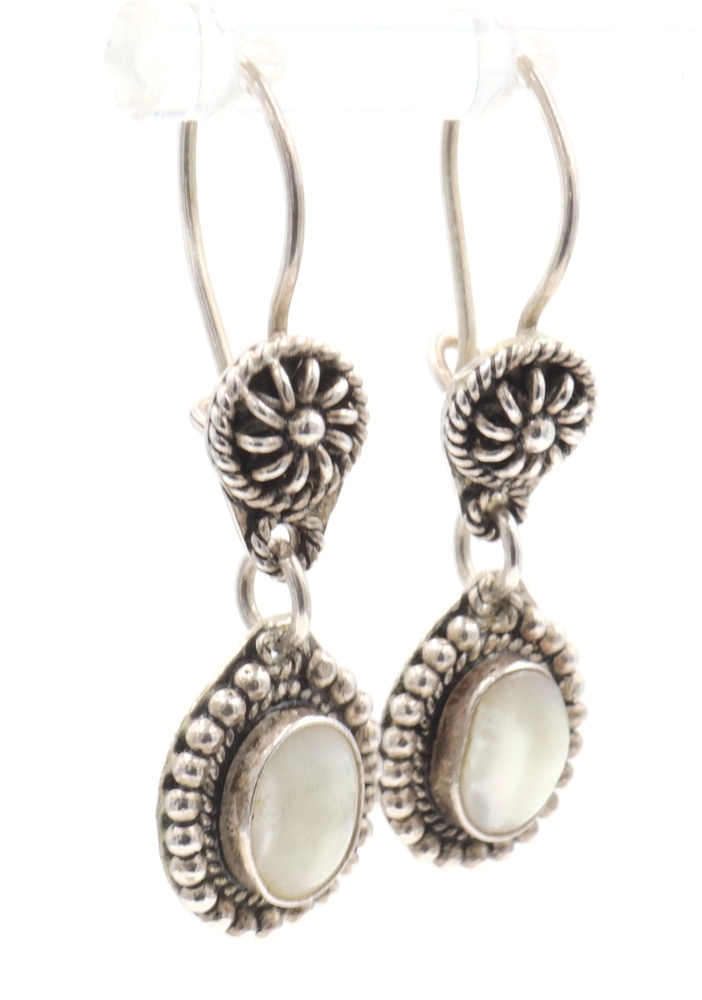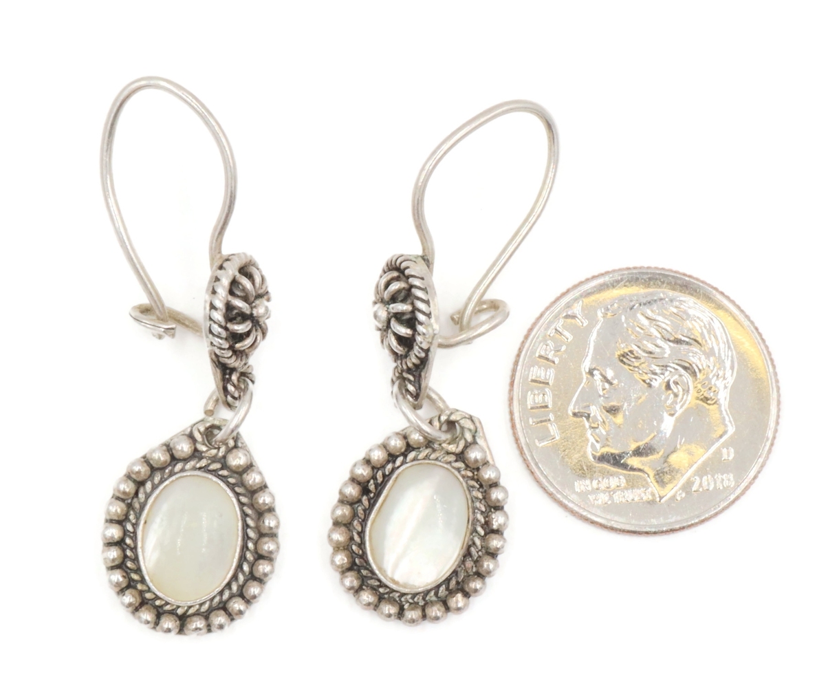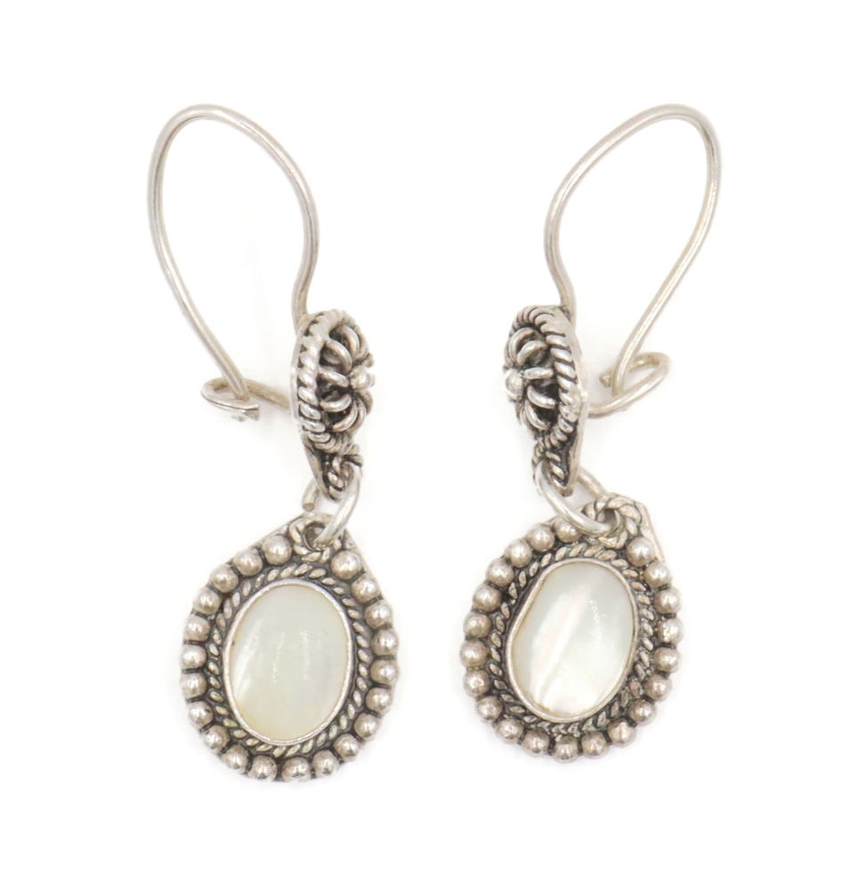 Cabochon Oval Cut Mother of Pearl Inlay Sterling Silver 925 Dangle Earrings | USA Pawn