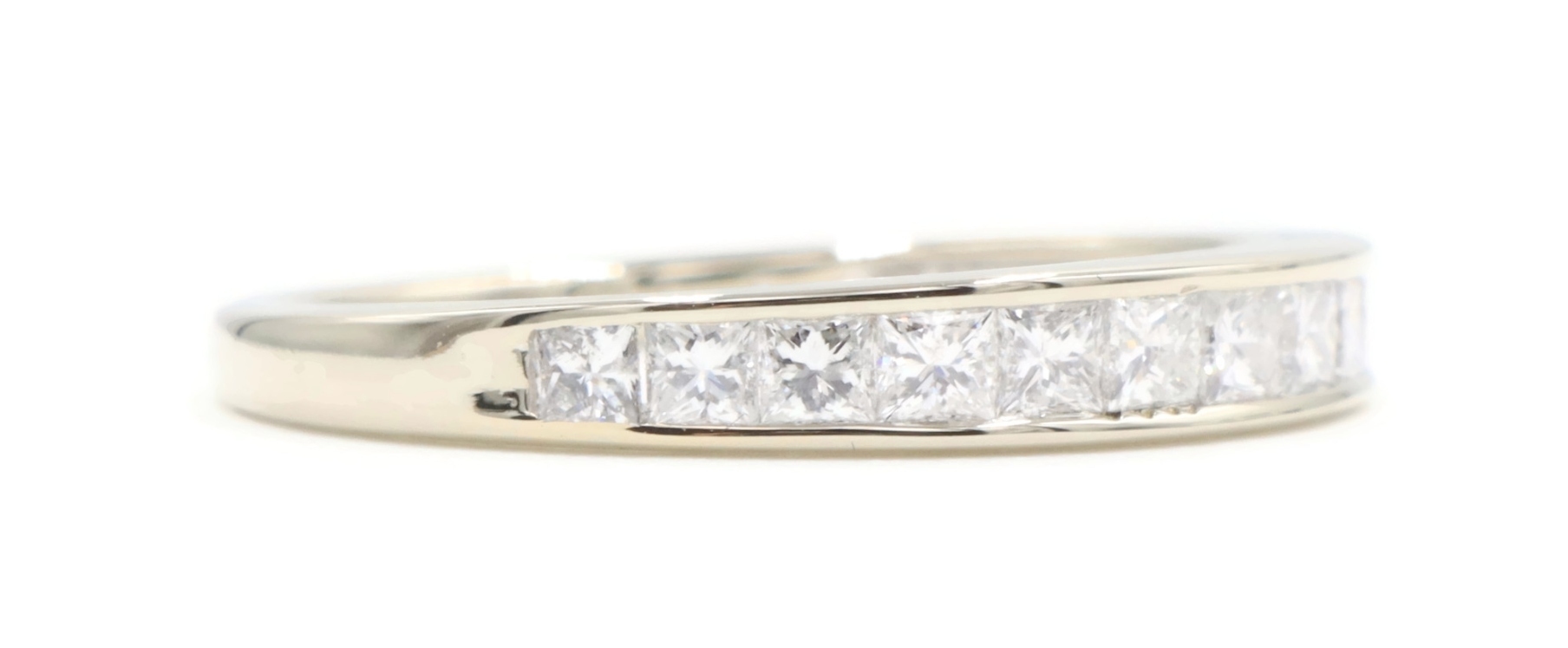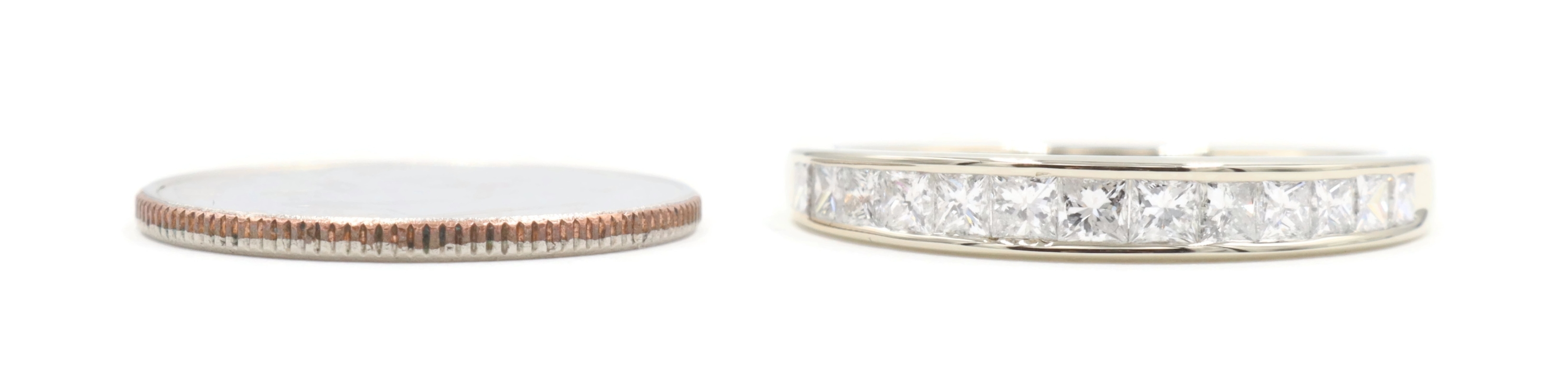 Channel-Set 0.78 Ctw Princess Diamond 14KT White Gold Anniversary Ring 2g ZEI. This ring is a size 7.