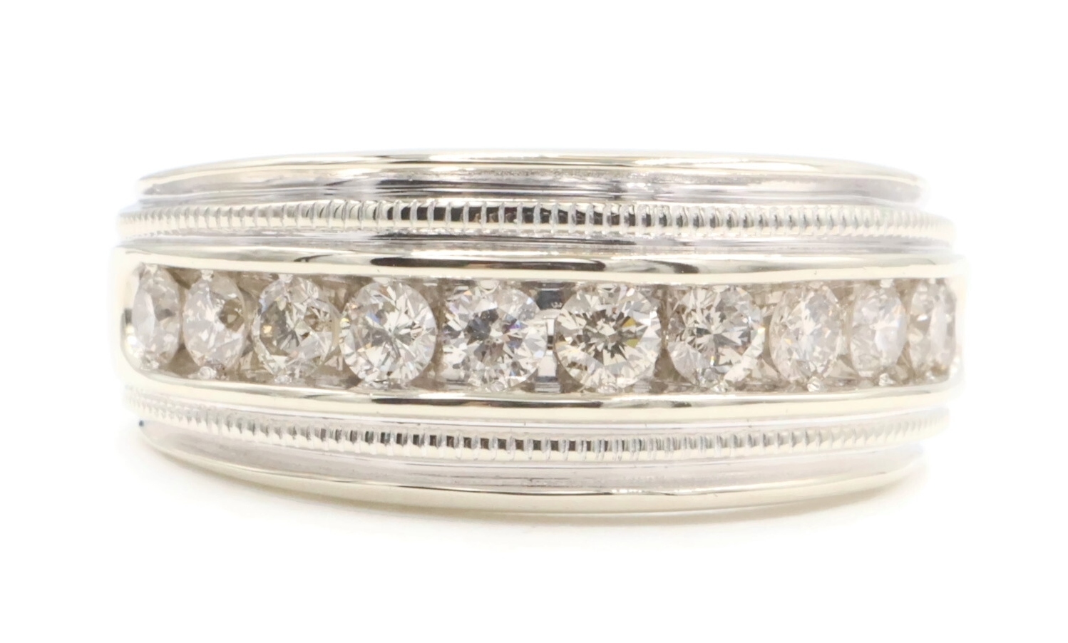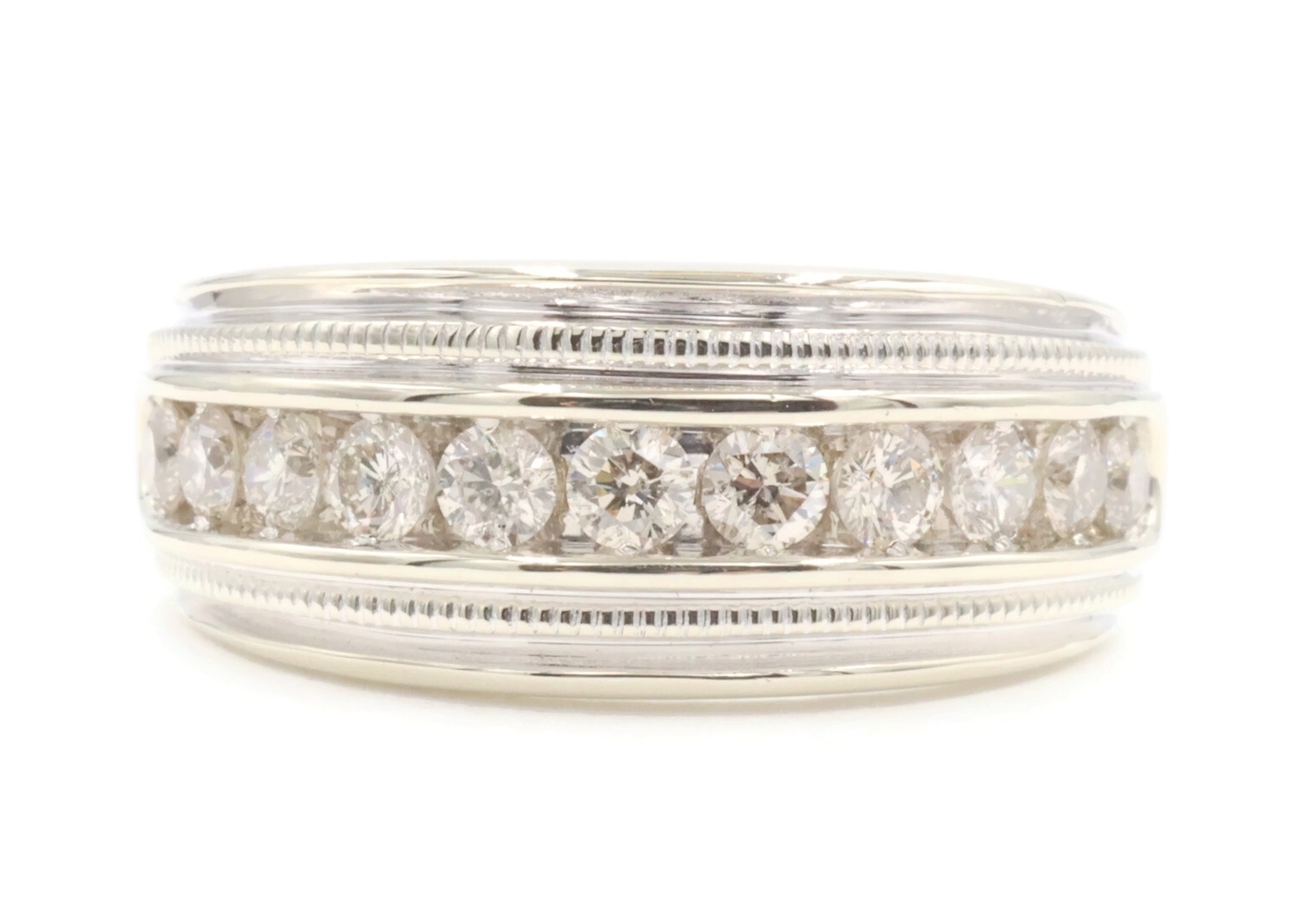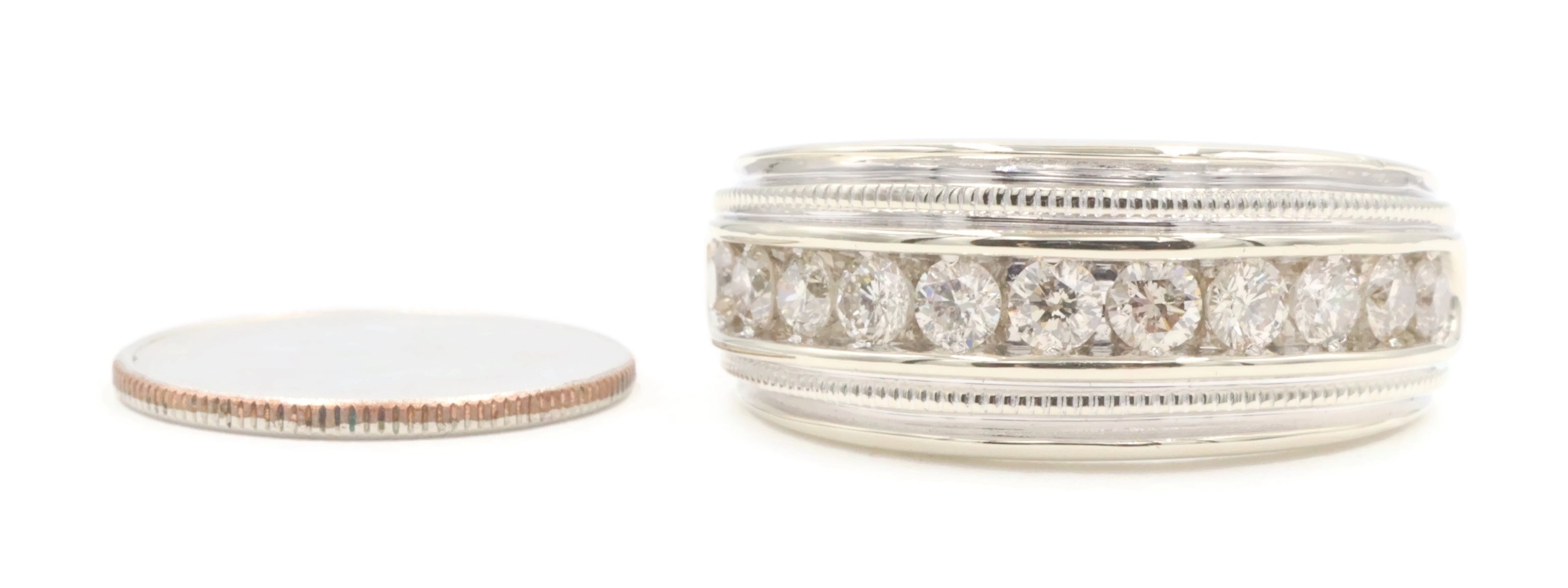 Channel-Set 1.65 Ctw Round Cut Diamond 14KT White Gold Wedding Band Ring 12.49g. This ring is a size 10 3/4.