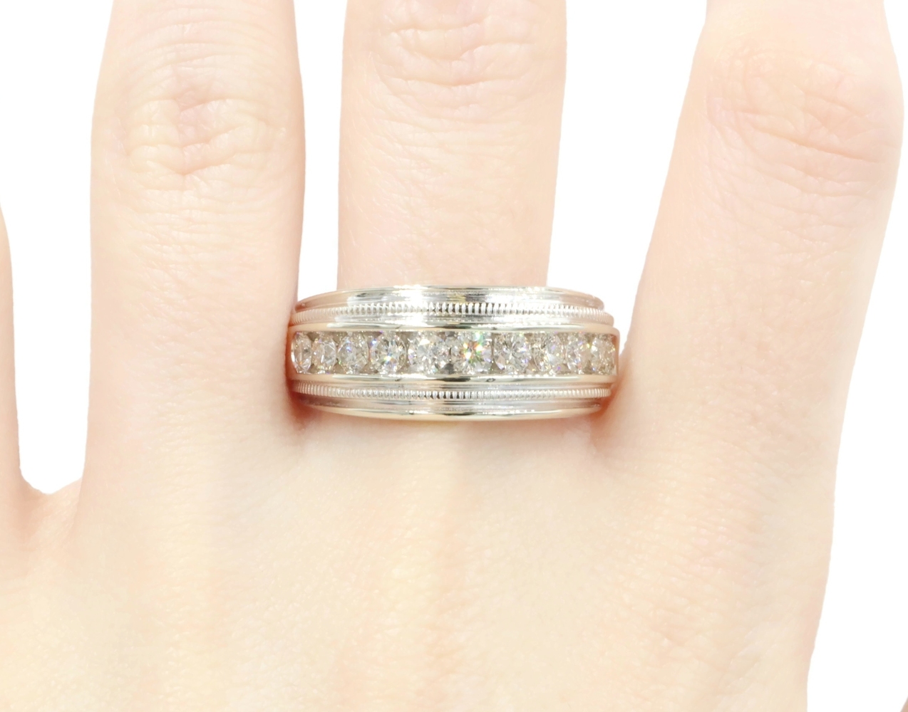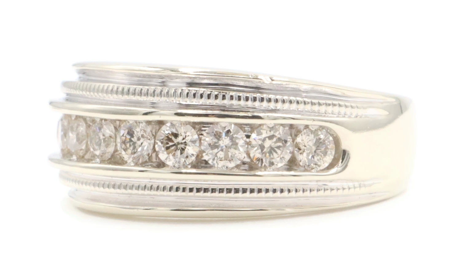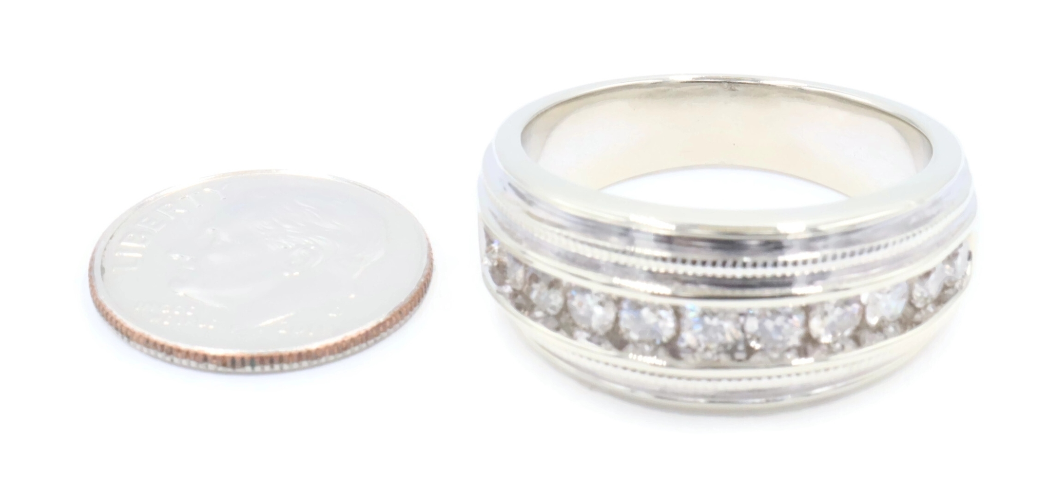 Channel-Set 1.65 Ctw Round Cut Diamond 14KT White Gold Wedding Band Ring 12.49g. This ring is a size 10 3/4.