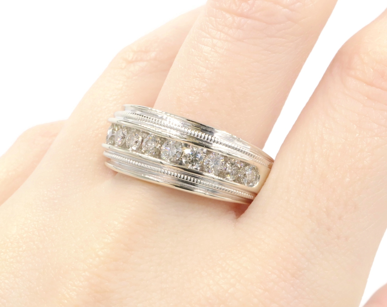 Channel-Set 1.65 Ctw Round Cut Diamond 14KT White Gold Wedding Band Ring 12.49g | USA Pawn