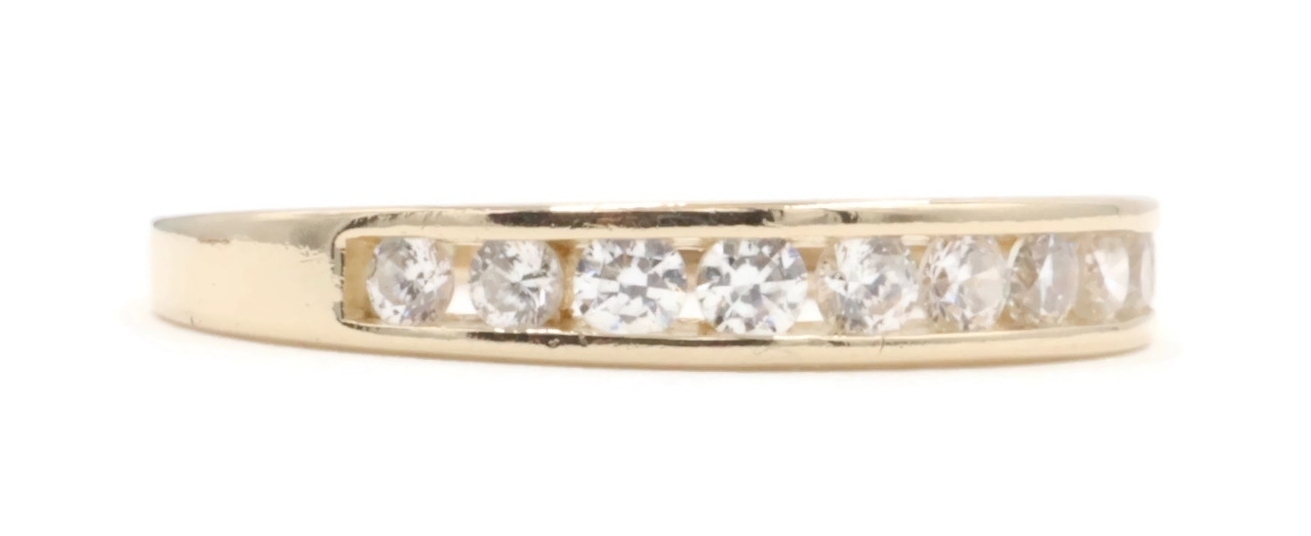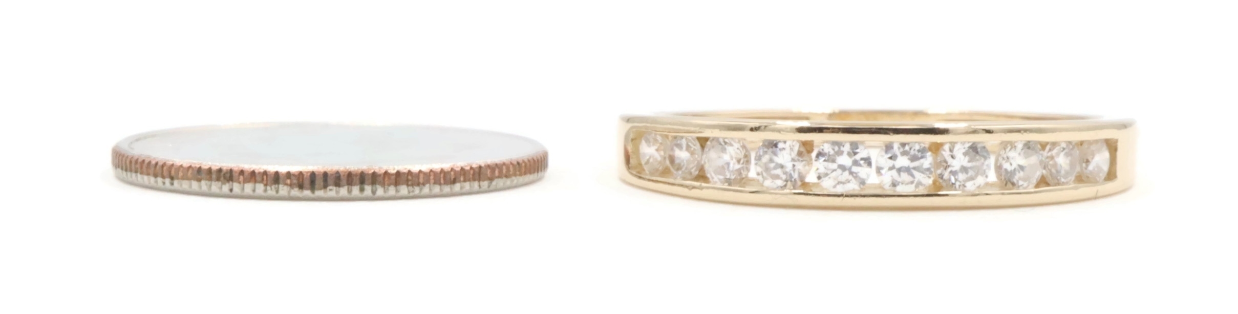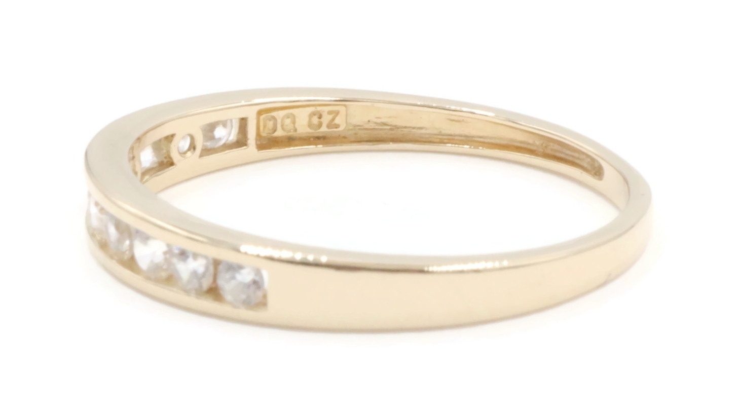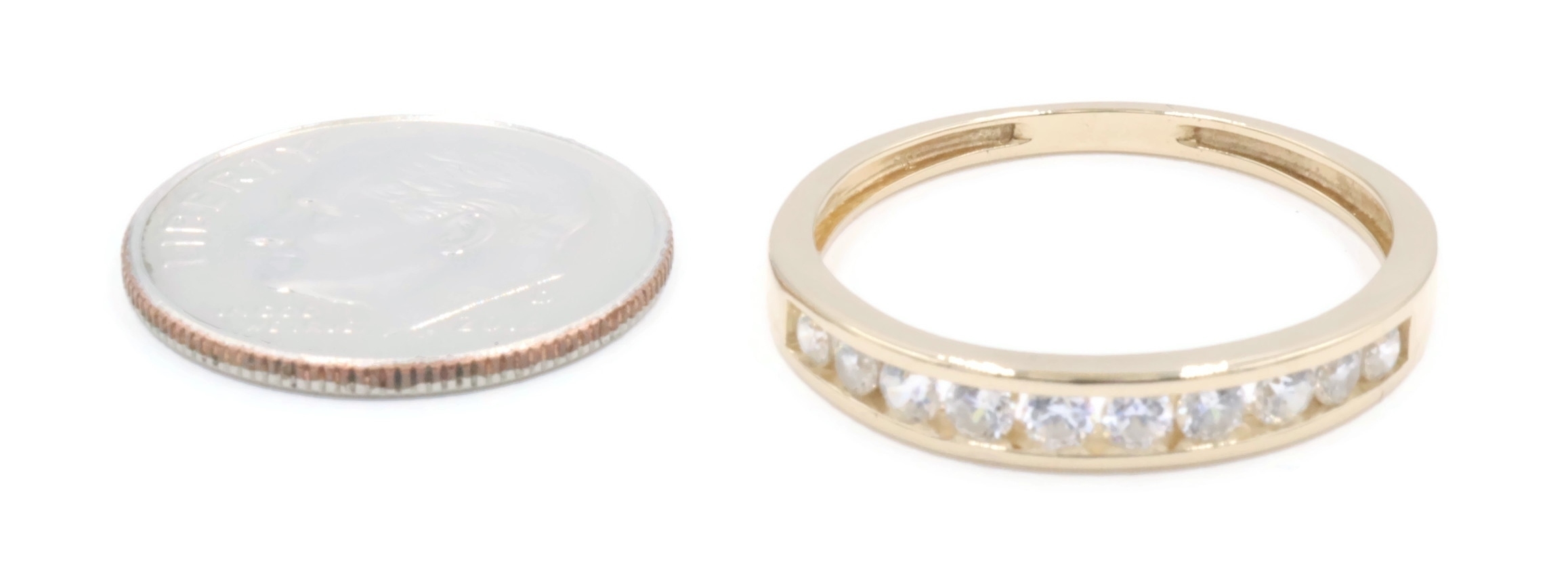 Channel-Set Round Cut Cubic Zirconia 14KT Yellow Gold Wedding Band Ring DQ 2.10g. This ring is a size 8 3/4.