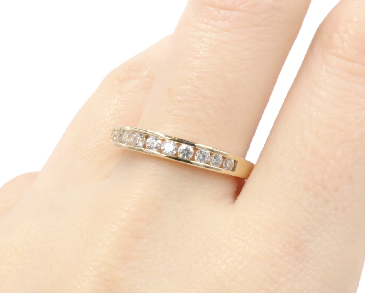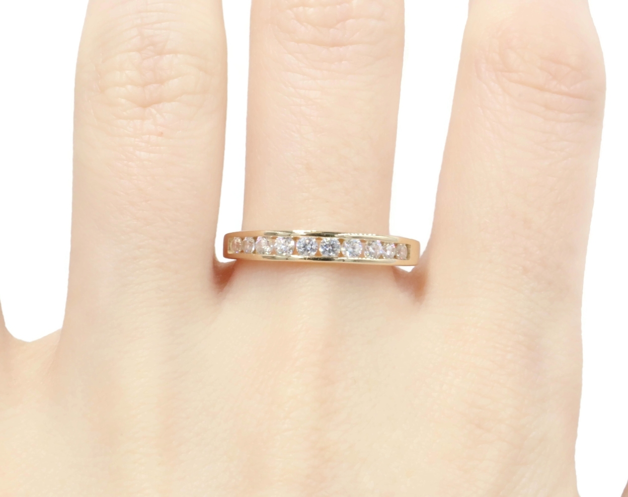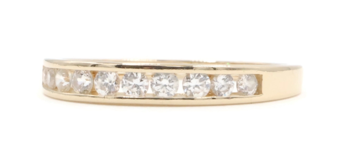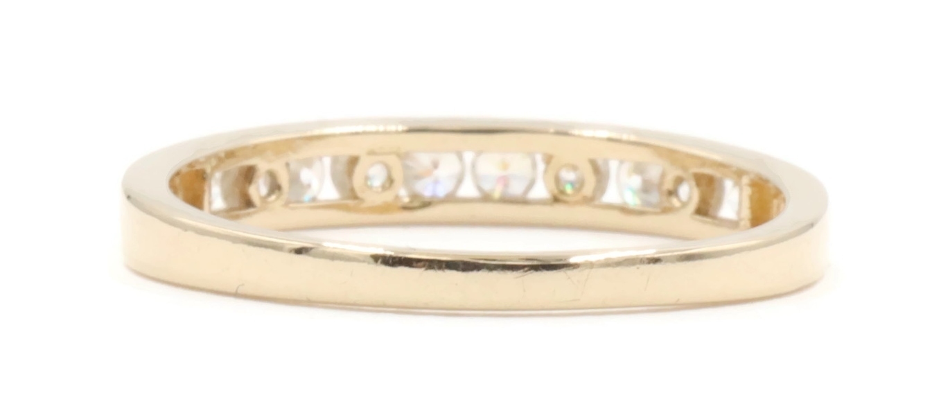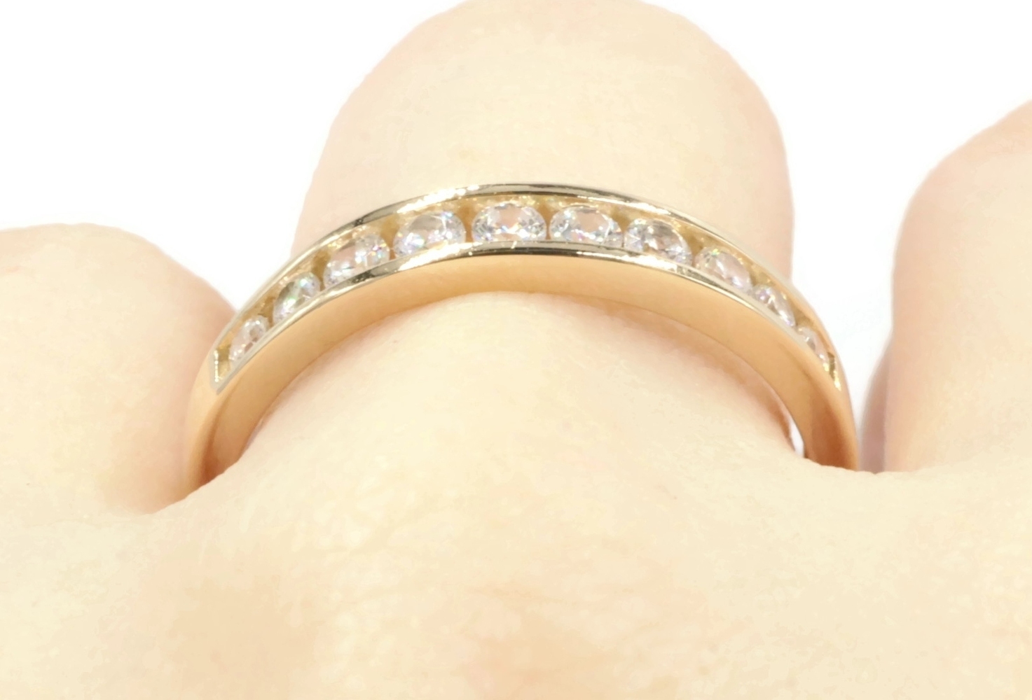 Channel-Set Round Cut Cubic Zirconia 14KT Yellow Gold Wedding Band Ring DQ 2.10g. This ring is a size 8 3/4.