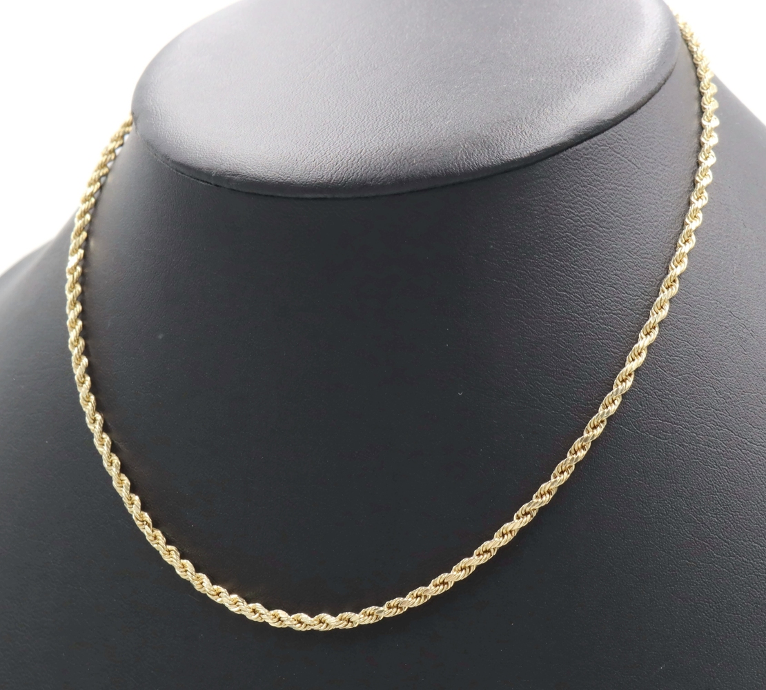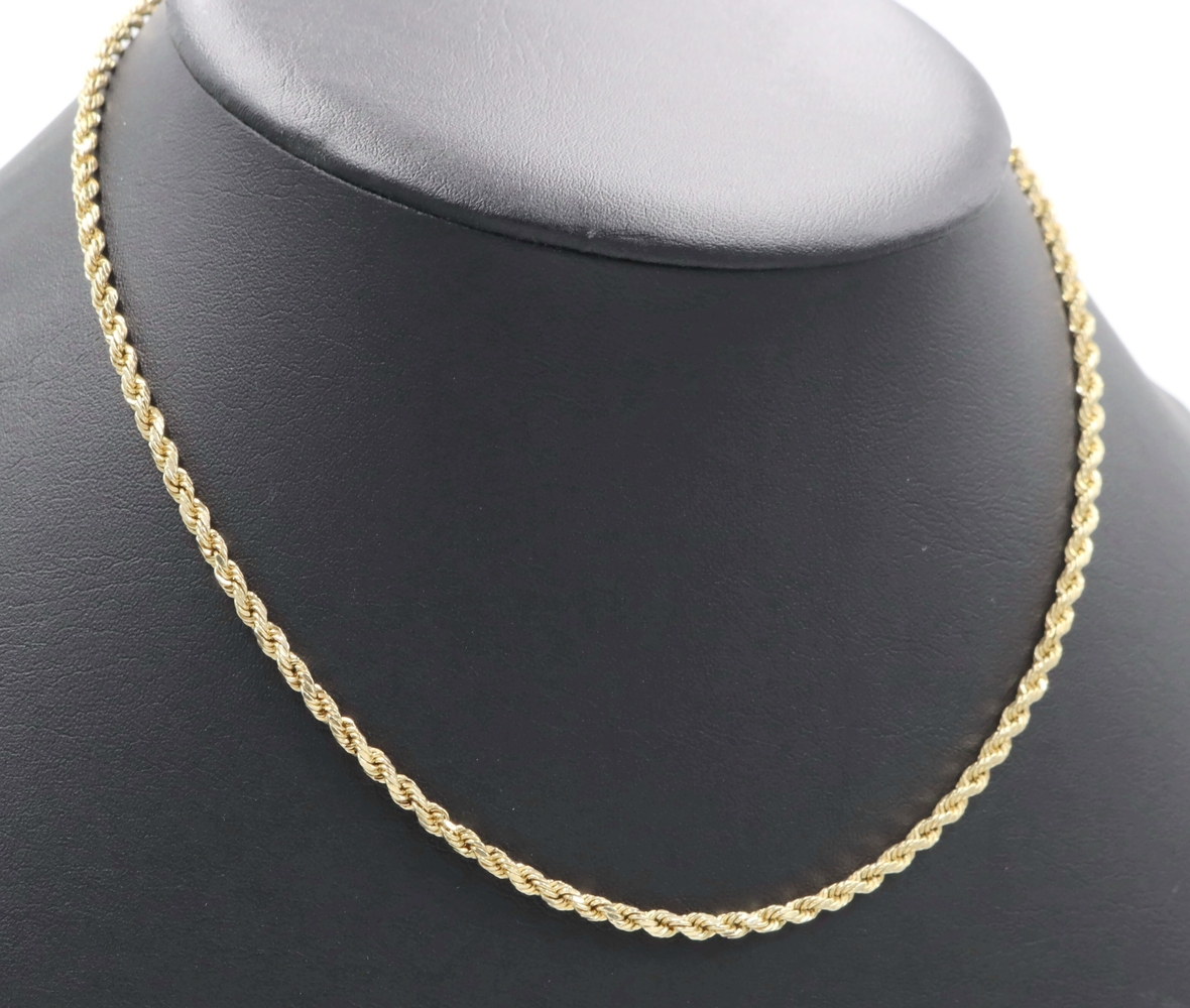 Classic 10KT Yellow Gold 3mm Wide High Shine Rope Chain Necklace 17" - 4.14g | USA Pawn