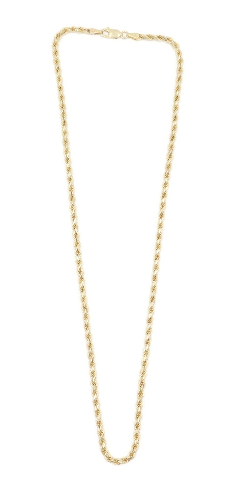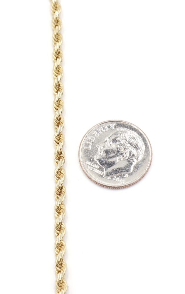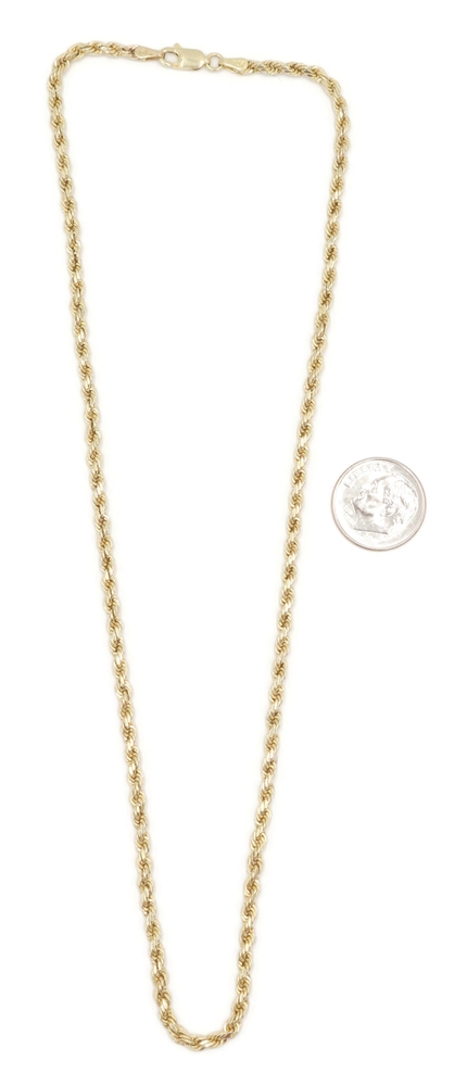 Classic 10KT Yellow Gold 3mm Wide High Shine Rope Chain Necklace 17" - 4.14g