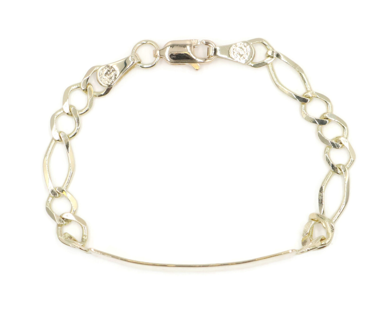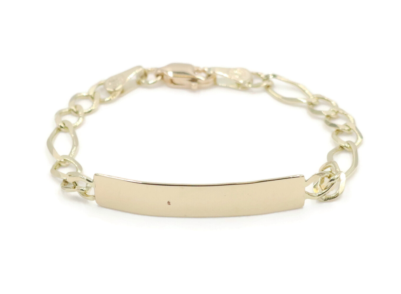 Classic 10KT Yellow Gold 6.5mm Blank ID Bar Figaro Chain Bracelet 5 3/4" - 4.1g | USA Pawn