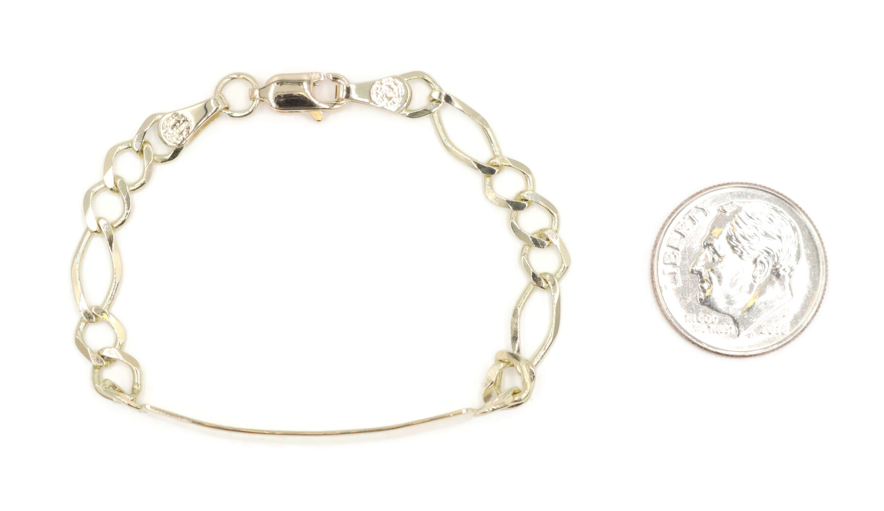 Classic 10KT Yellow Gold 6.5mm Blank ID Bar Figaro Chain Bracelet 5 3/4" - 4.1g. This bracelet is approximately 5 3/4 inches in length.