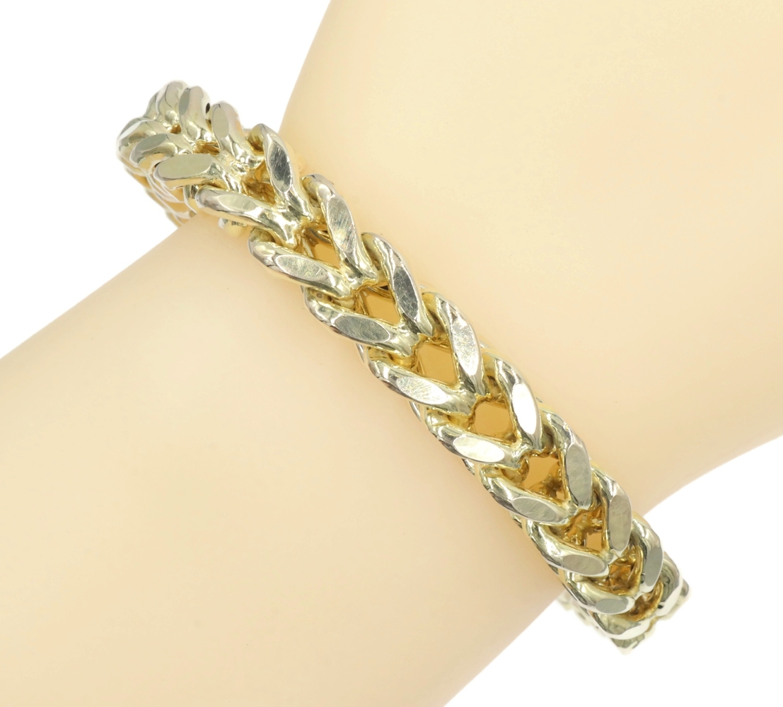Classic 10KT Yellow Gold 9.4mm Wide Foxtail Chain Bracelet 9" by ALI - 37.55g. This bracelet is approximately 9 inches in length and 9.4mm in width.