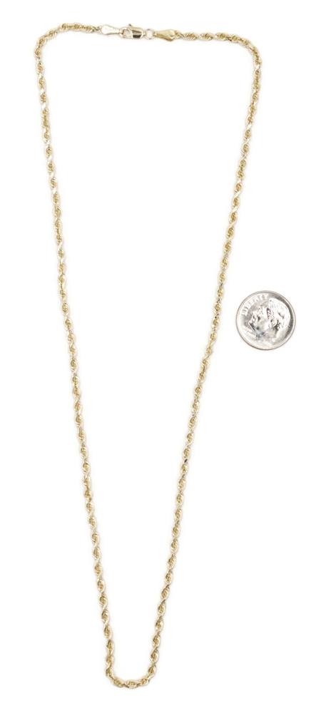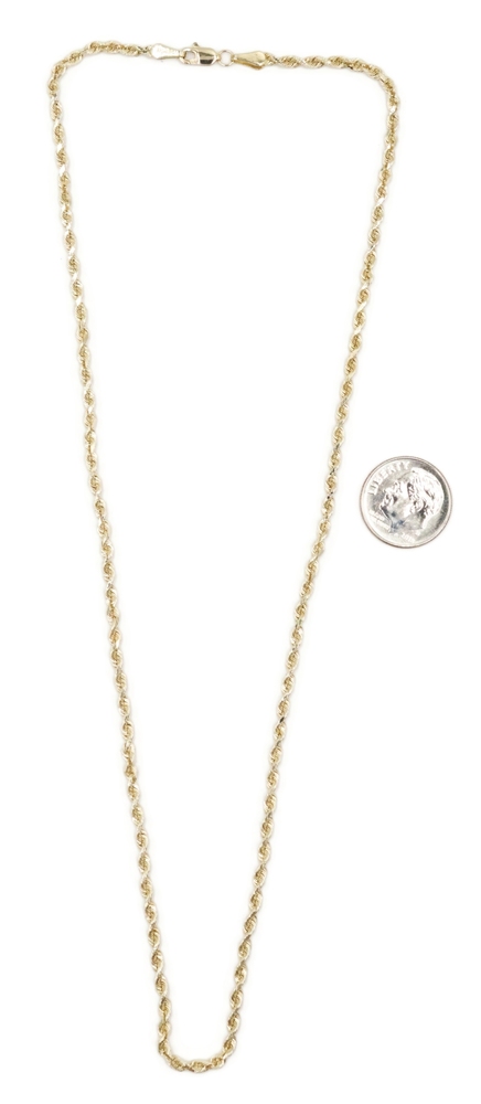 Classic 14KT Yellow Gold 2.5mm Wide Rope Chain Necklace 18.5" - 6.75 Grams | USA Pawn