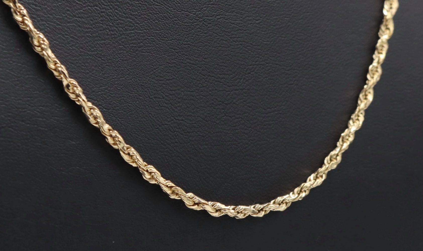 Classic 14KT Yellow Gold 3.6mm Wide High Shine Rope Chain Necklace 23" - 18.89g | USA Pawn