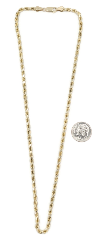 Classic 14KT Yellow Gold 3.6mm Wide Solid Rope Chain Necklace 18" - 18.78 Grams | USA Pawn