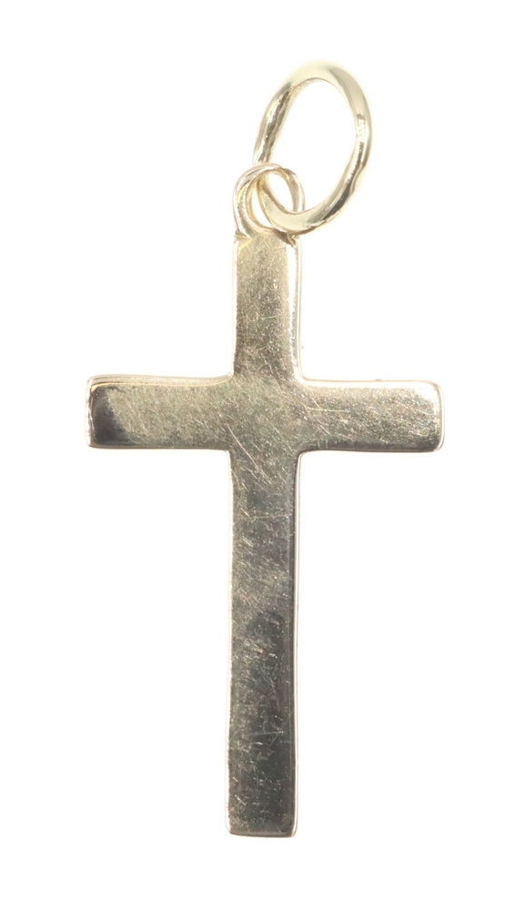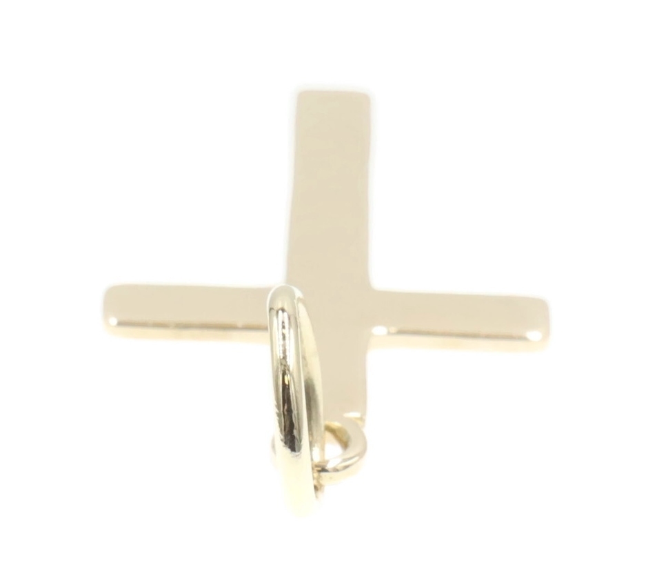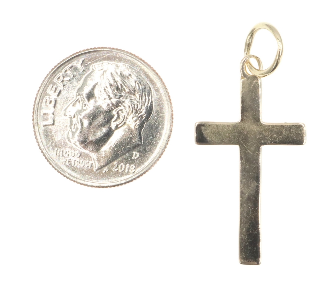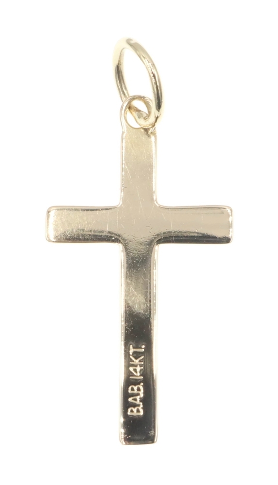 Classic 14KT Yellow Gold Flat Religious Cross Necklace Pendant 1.2" by B.A.B. This pendant is approximately 32mm in length (including the bail) and 14.1mm in width.