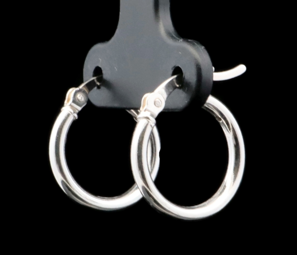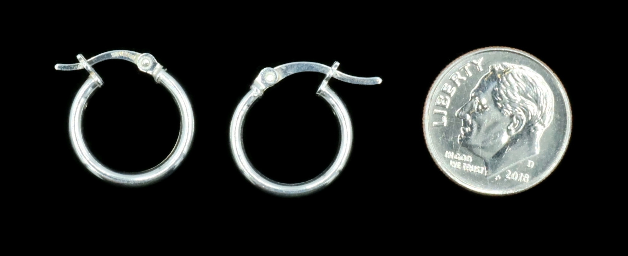 Classic 925 Sterling Silver 15.5mm Plain Medium Women's Round Hoop Earrings | USA Pawn
