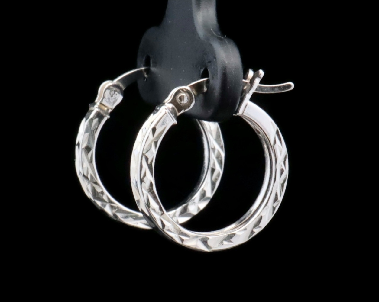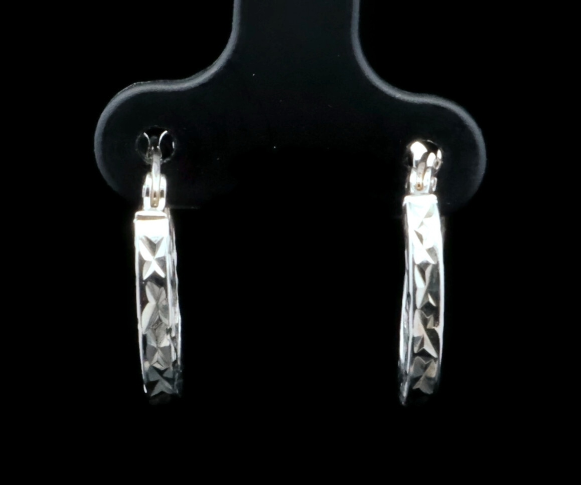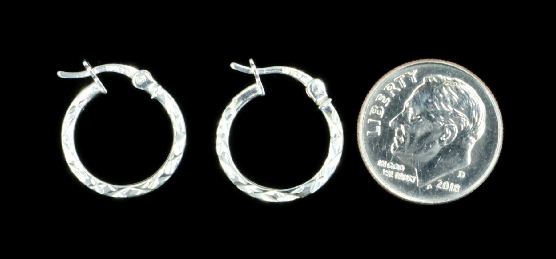 Classic 925 Sterling Silver 16mm Diamond Cut Women's Round Hoop Earrings - 1.4g | USA Pawn