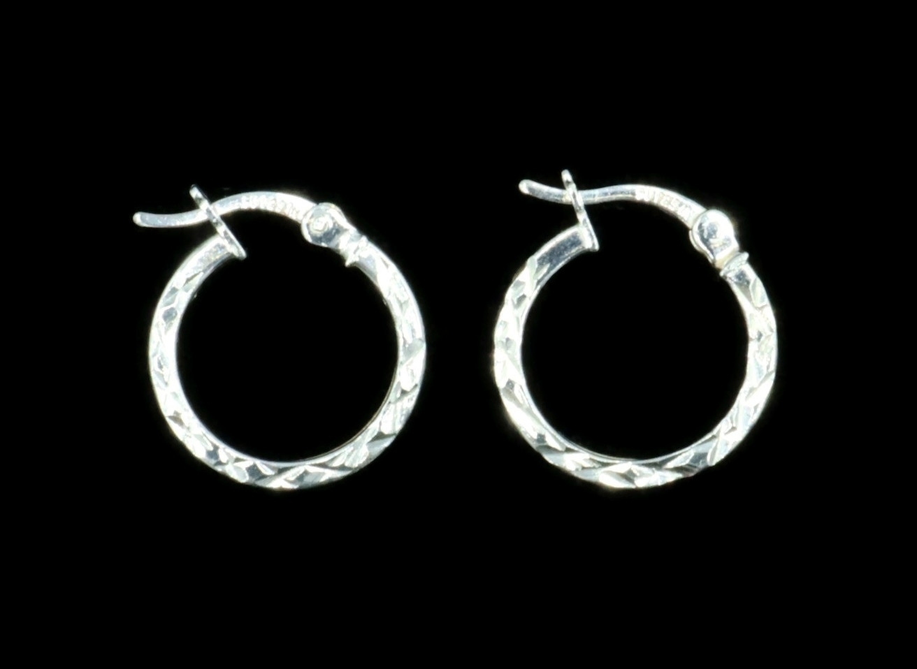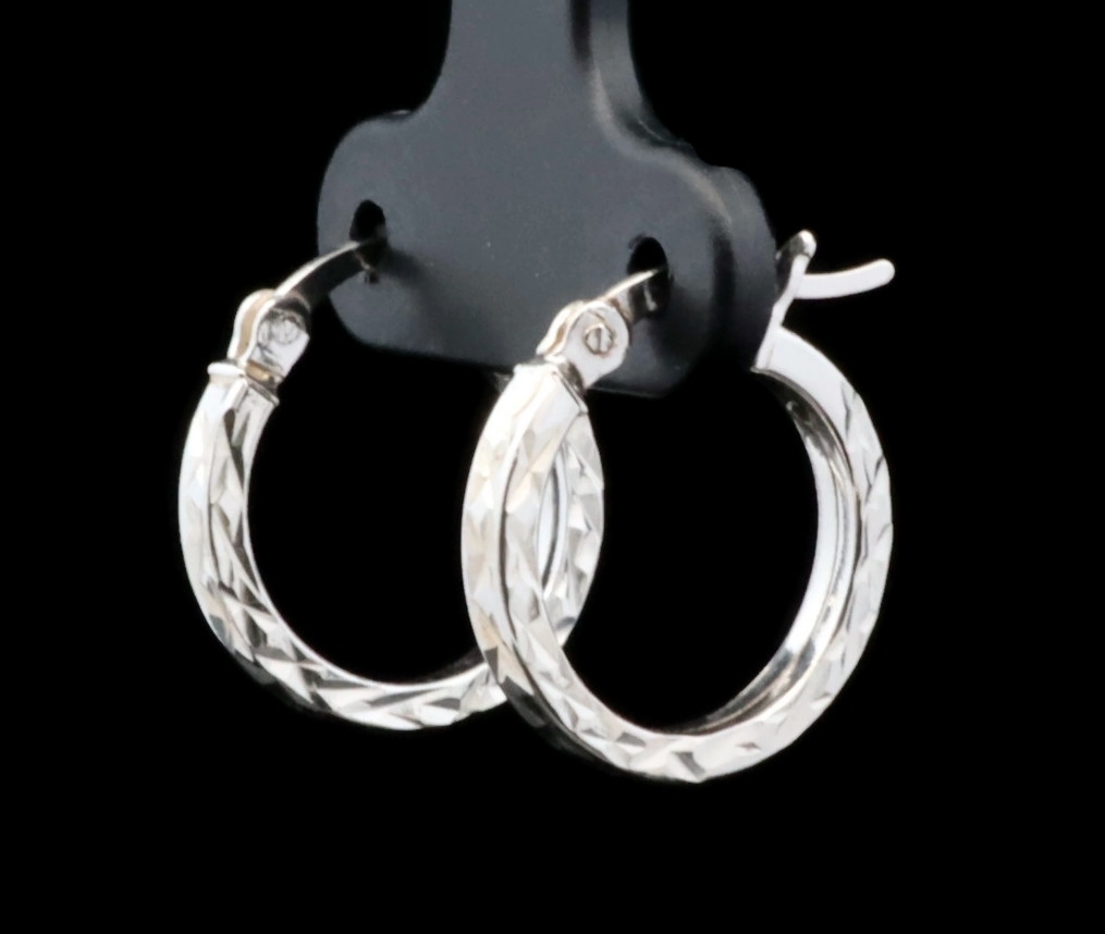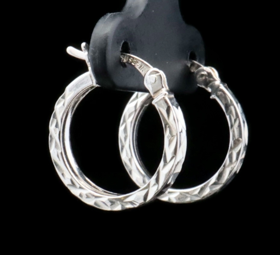 Classic 925 Sterling Silver 16mm Diamond Cut Women's Round Hoop Earrings - 1.4g | USA Pawn