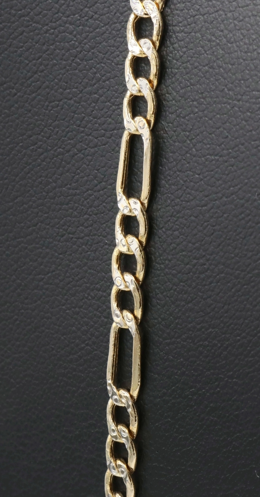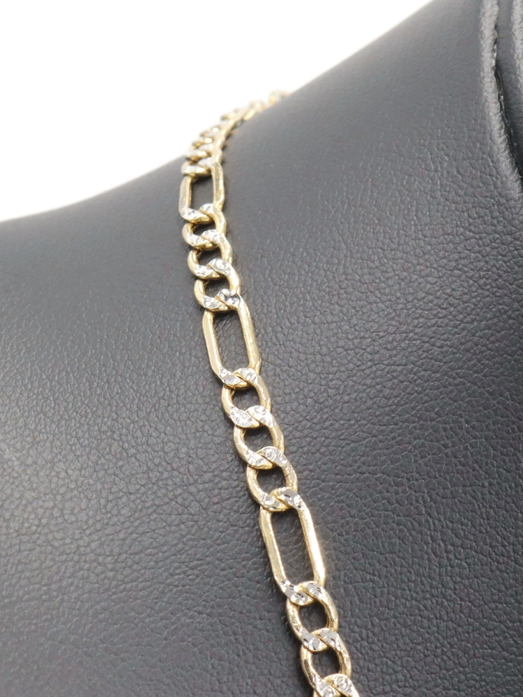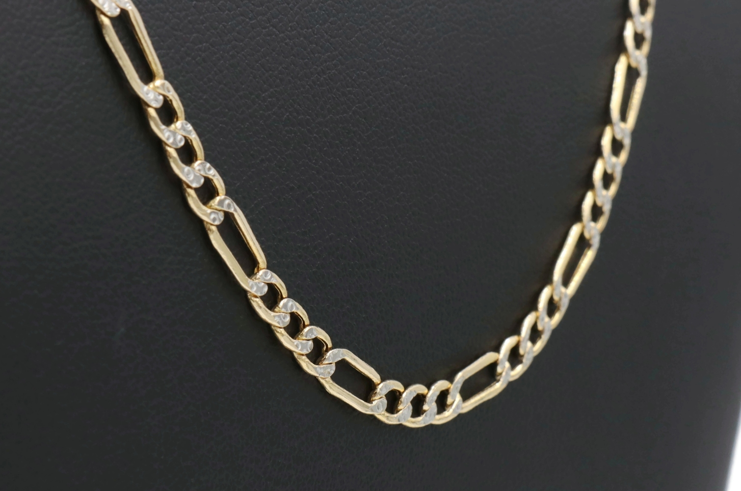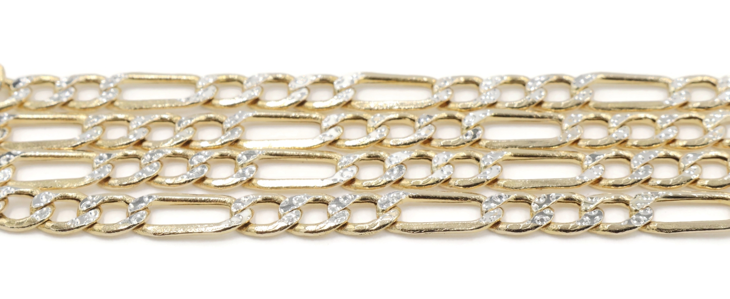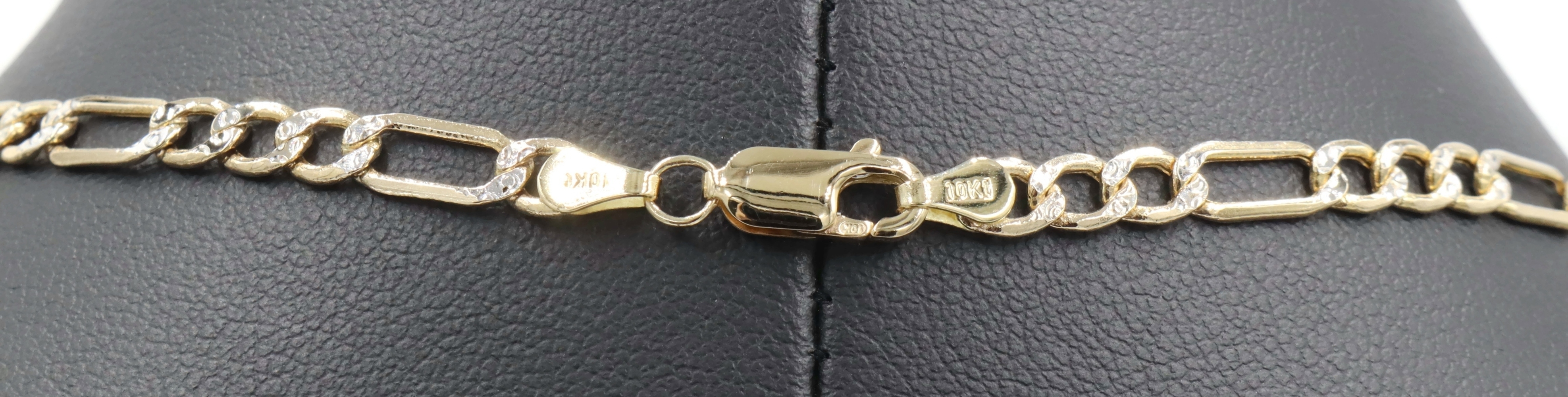 Classic Diamond-Cut 10KT Yellow Gold 4.4mm Figaro Chain Necklace 20.5" GS - 6.2g. This necklace is approximately 20 1/2 inches in length and 4.4mm in width.