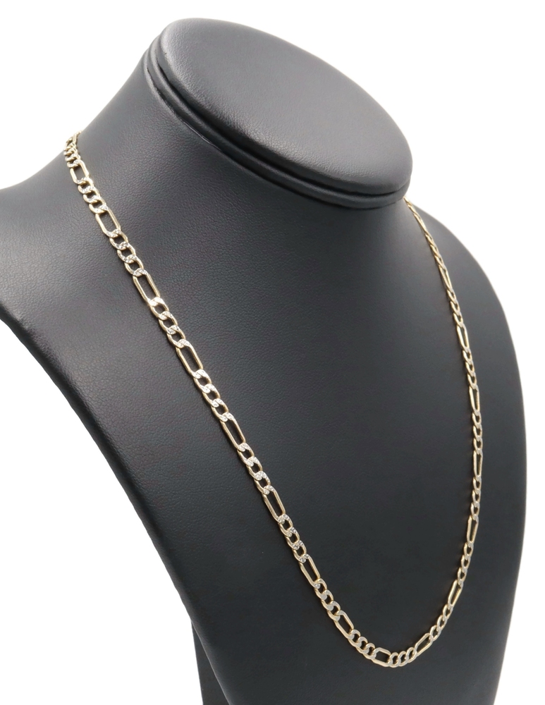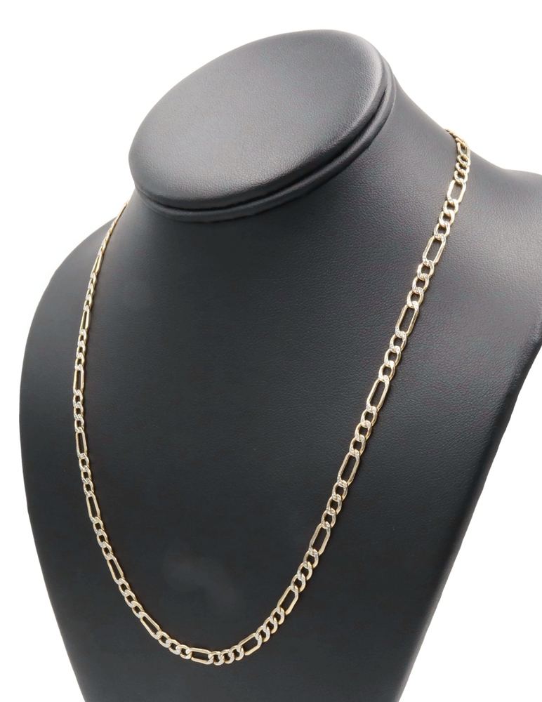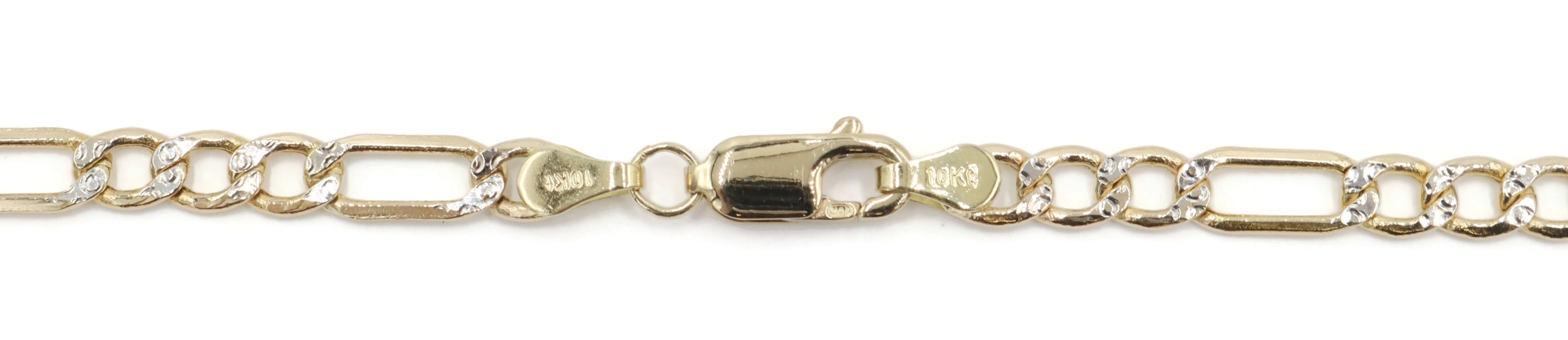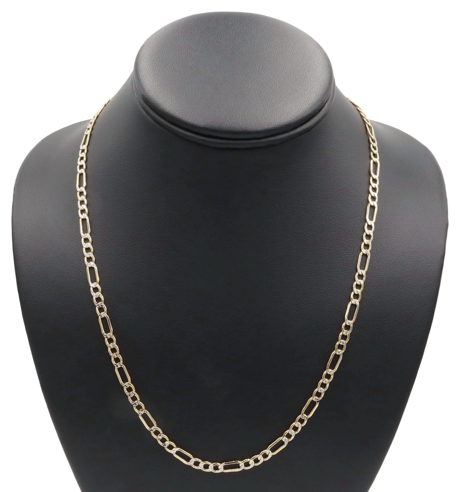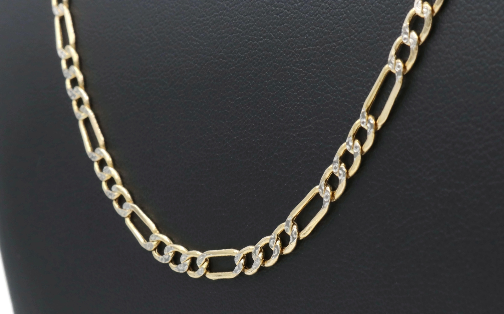 Classic Diamond-Cut 10KT Yellow Gold 4.4mm Figaro Chain Necklace 20.5" GS - 6.2g. This necklace is approximately 20 1/2 inches in length and 4.4mm in width.