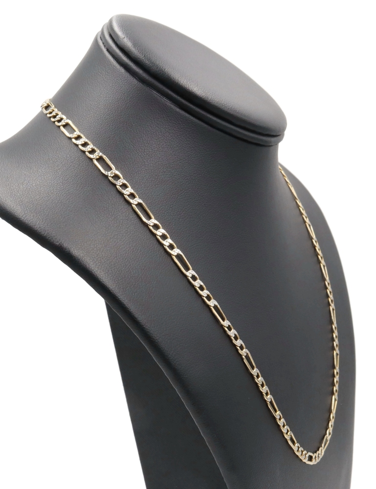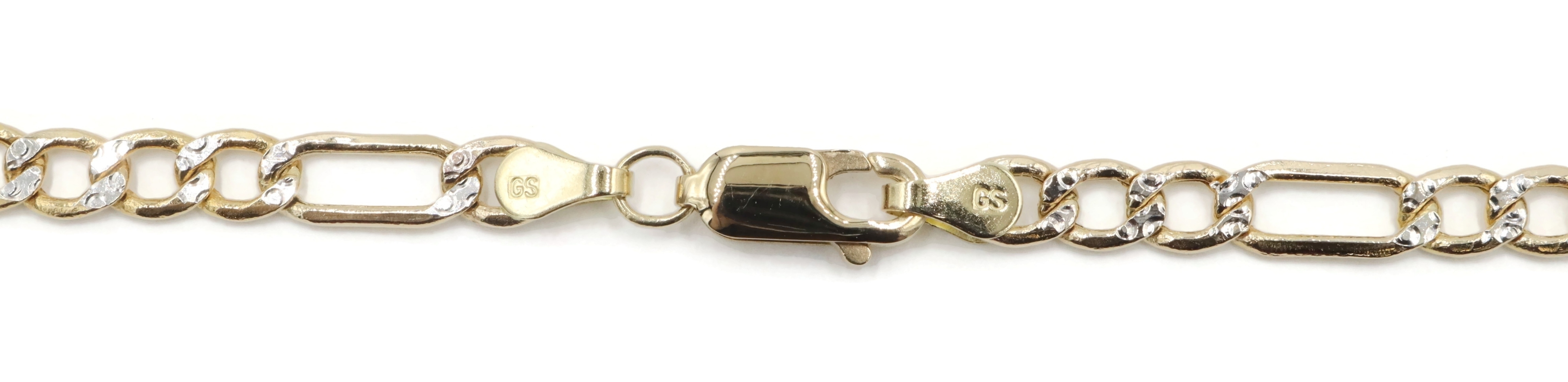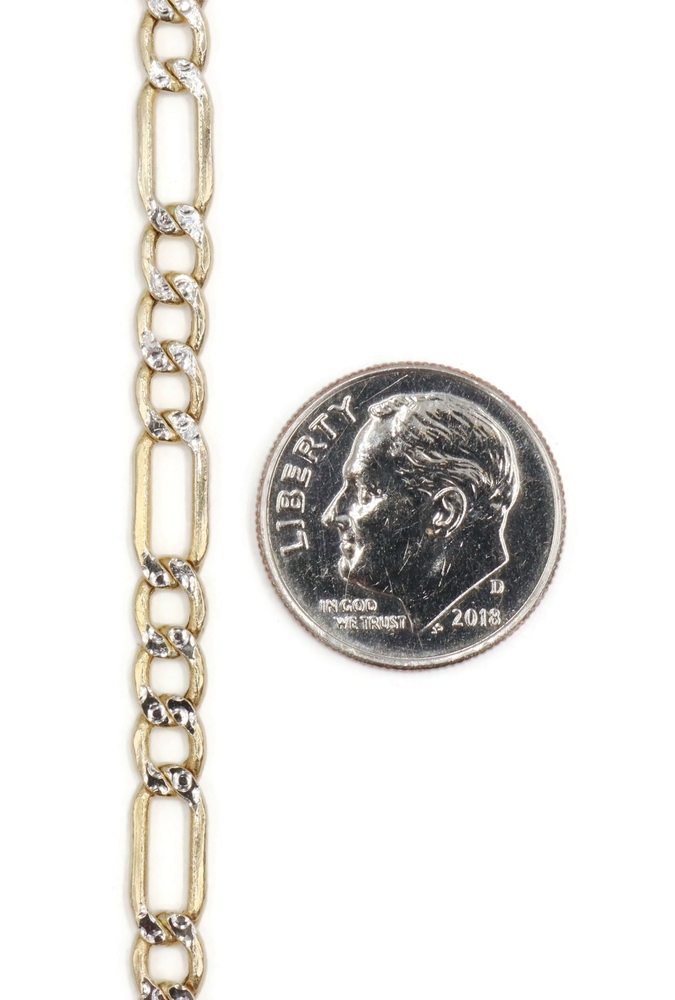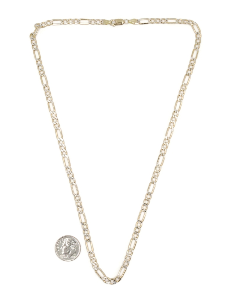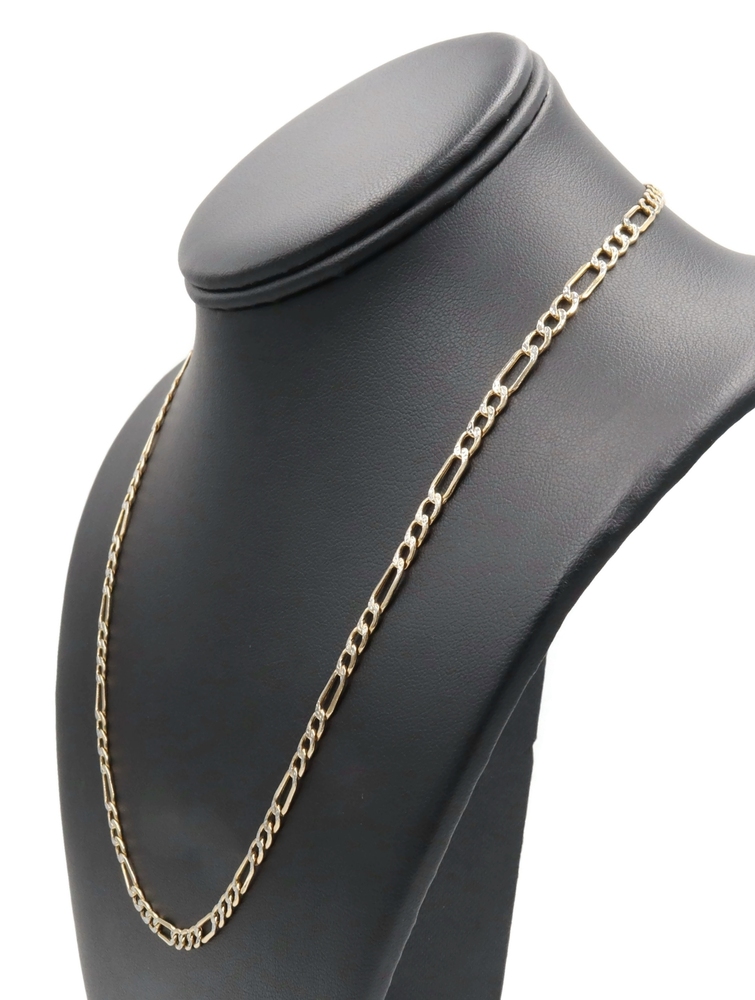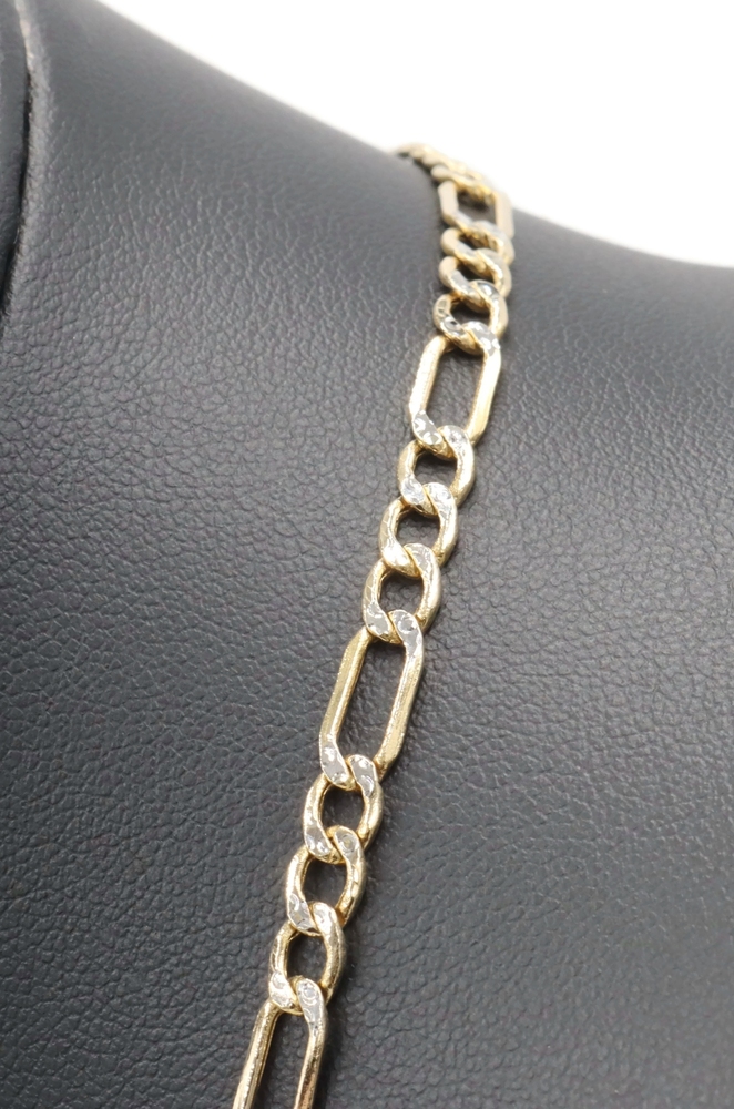 Classic Diamond-Cut 10KT Yellow Gold 4.4mm Figaro Chain Necklace 20.5" GS - 6.2g. This necklace is approximately 20 1/2 inches in length and 4.4mm in width.