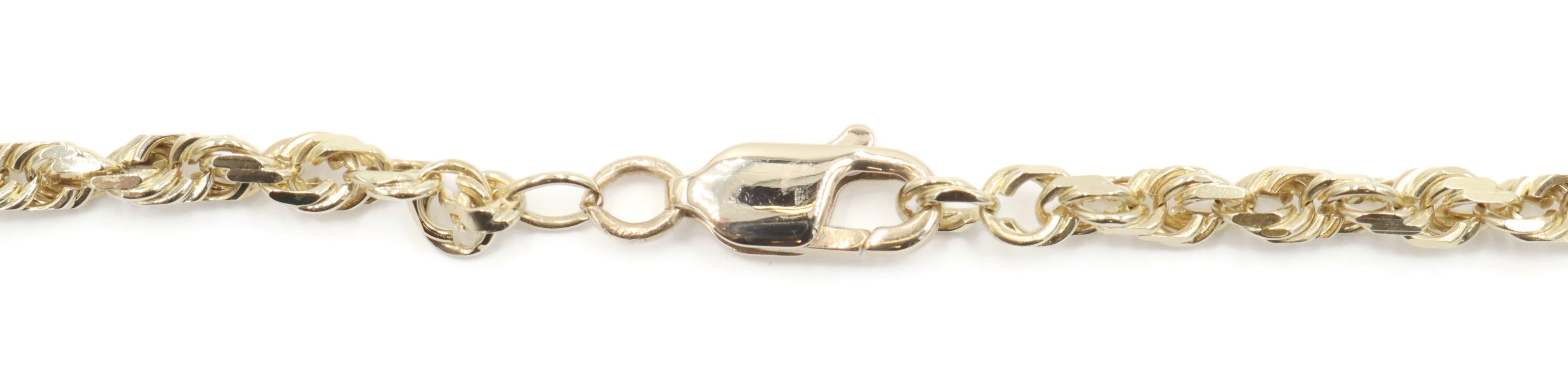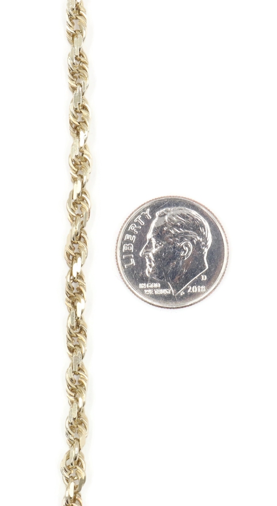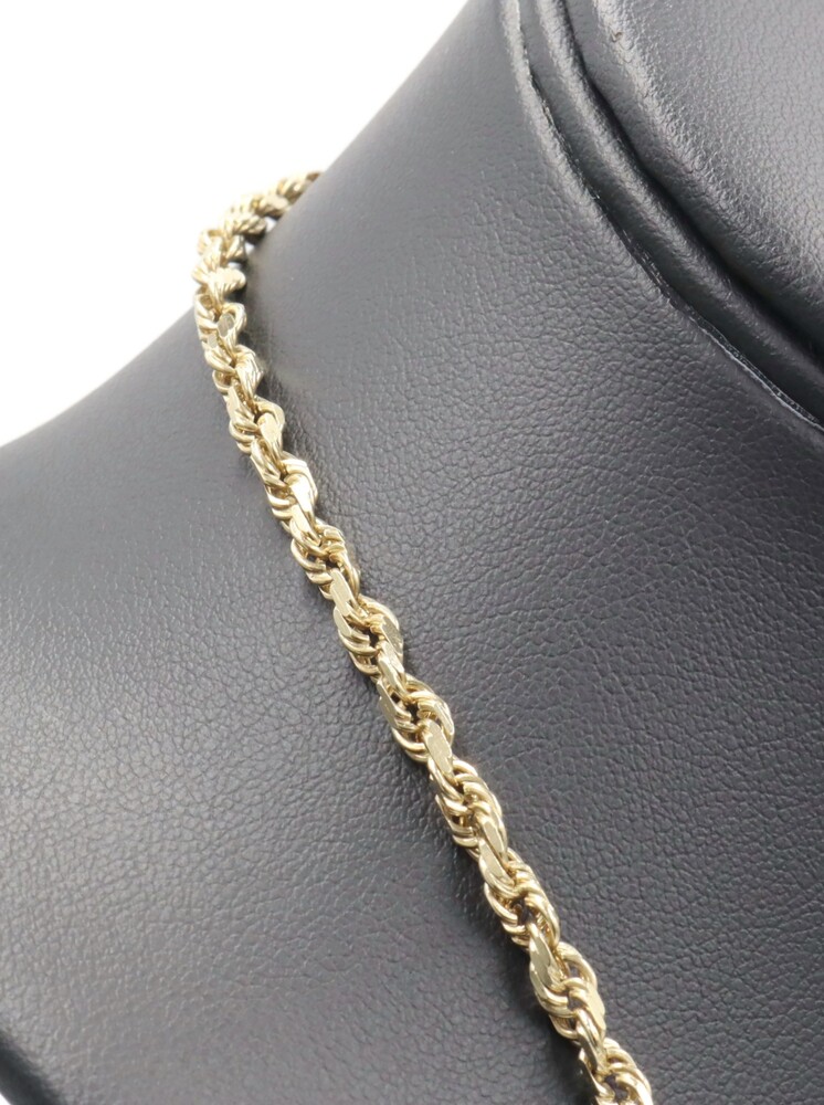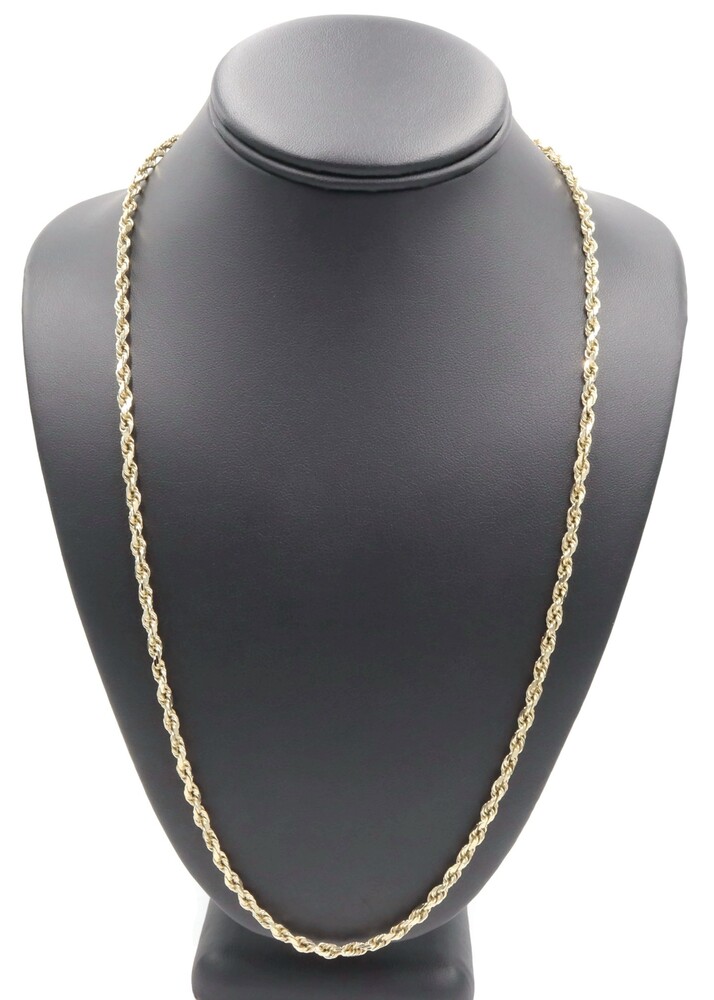 Classic Heavy 10KT Yellow Gold 4mm High Shine Rope Chain Necklace 26" - 23.40g. This necklace is approximately 26 inches in length and 4mm in width.