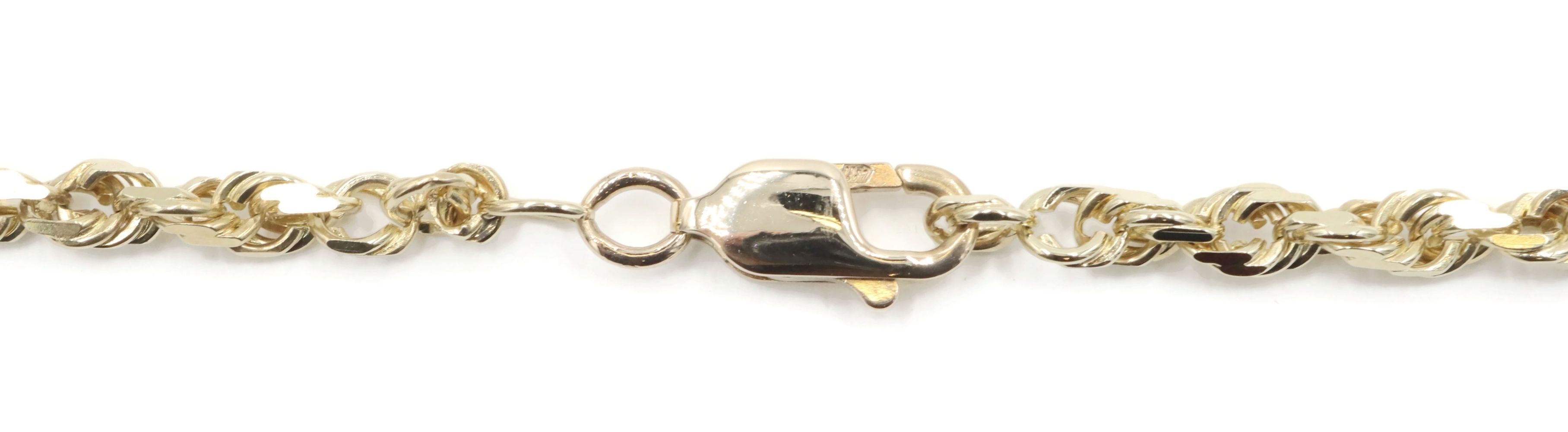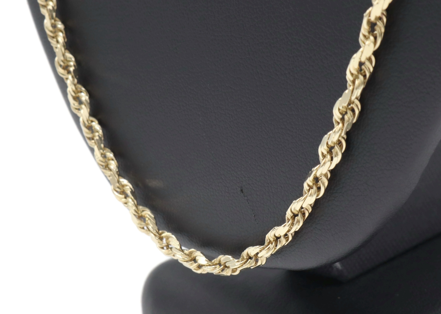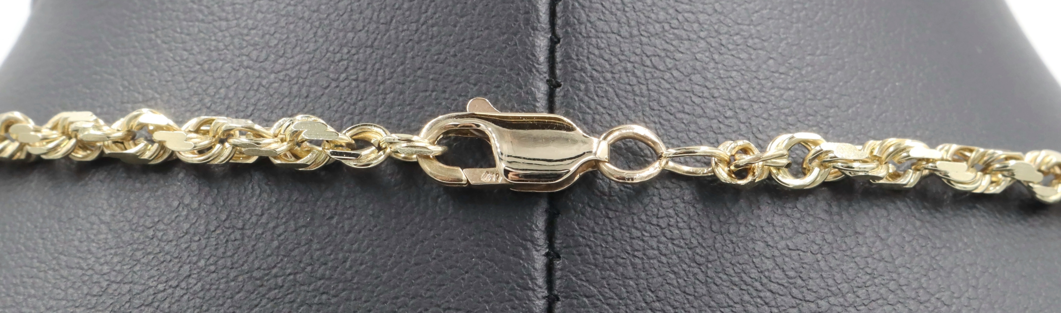 Classic Heavy 10KT Yellow Gold 4mm High Shine Rope Chain Necklace 26" - 23.40g. This necklace is approximately 26 inches in length and 4mm in width.