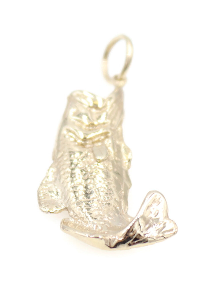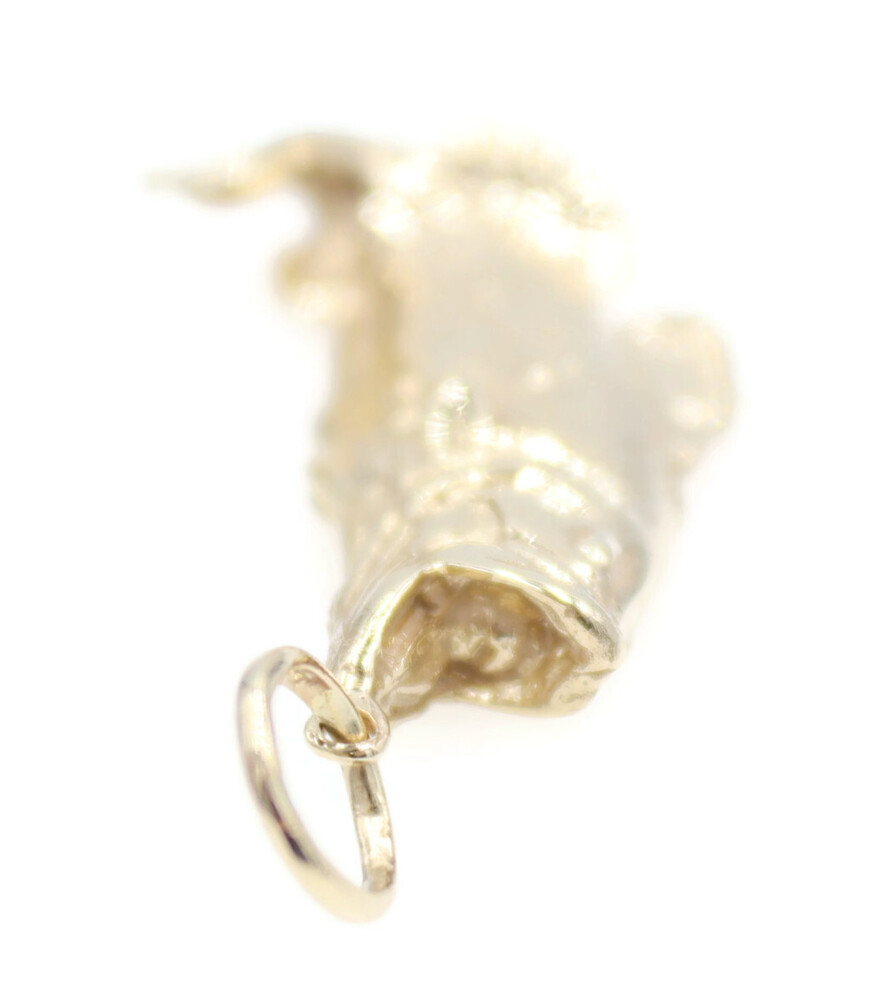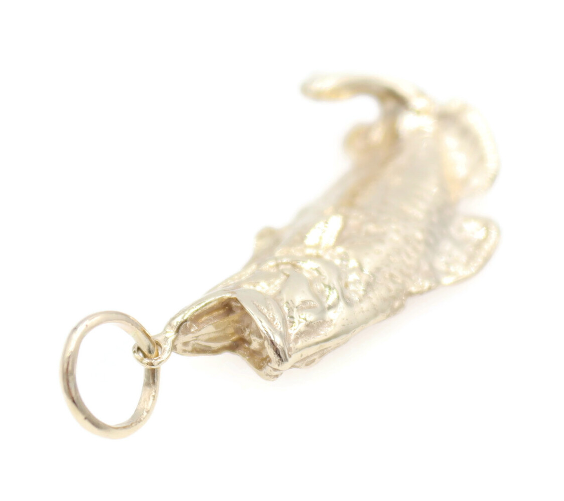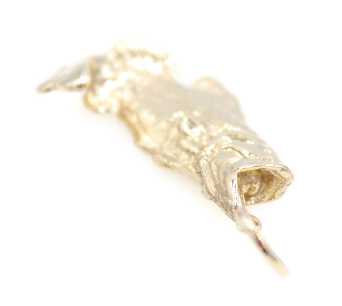 Classic High Shine 10KT Yellow Gold Detailed Bass Fish Necklace Pendant 34.1mm. This pendant is approximately 34.1mm in length (including the bail) and 15.3mm in width.