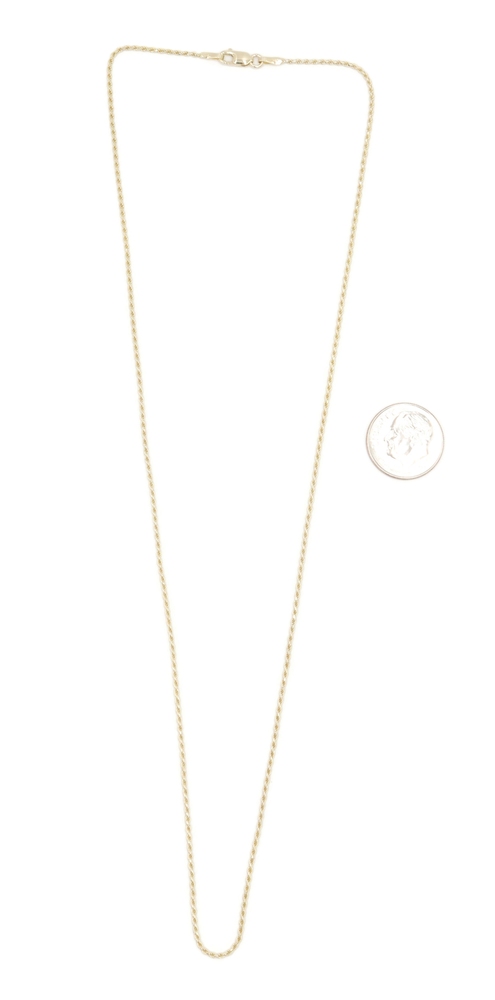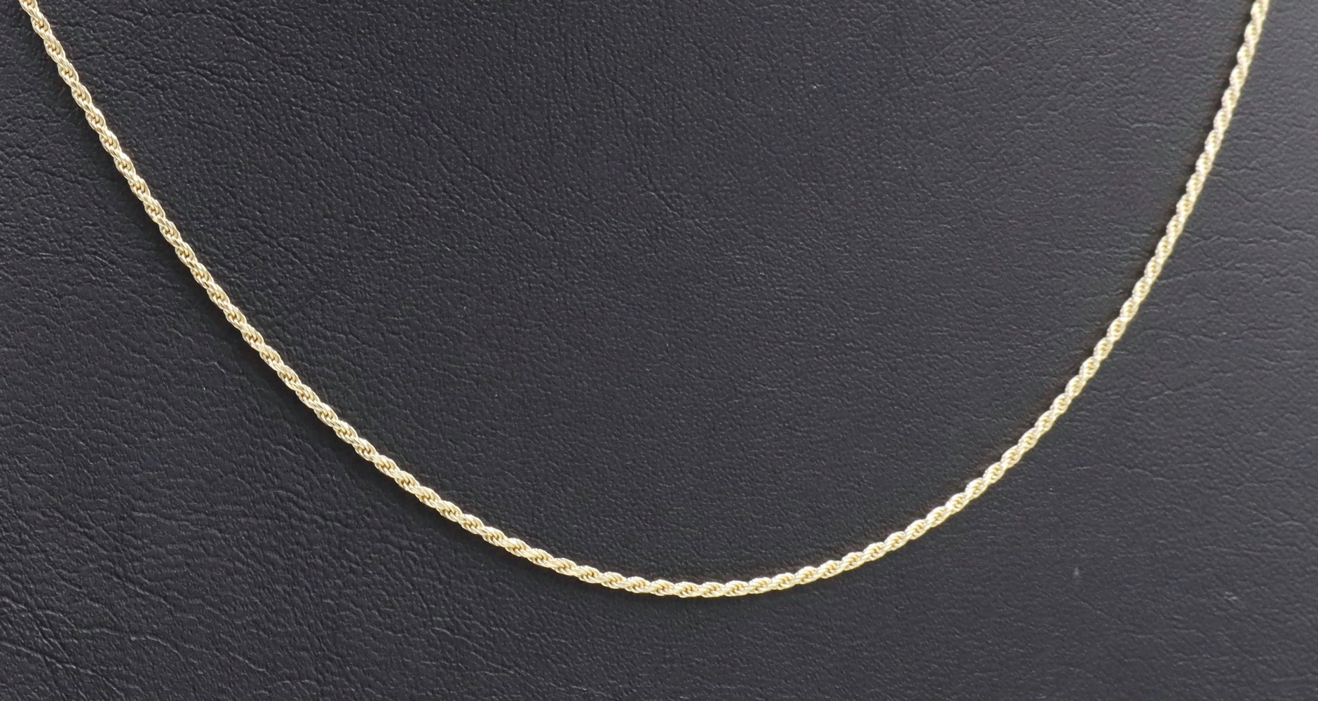 Classic High Shine 14KT Yellow Gold 1.2mm Wide Rope Chain Necklace 19" - 2.95g | USA Pawn