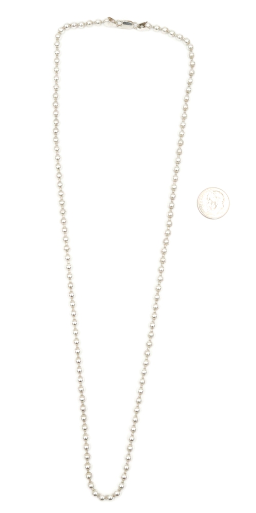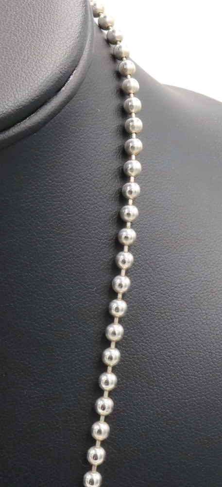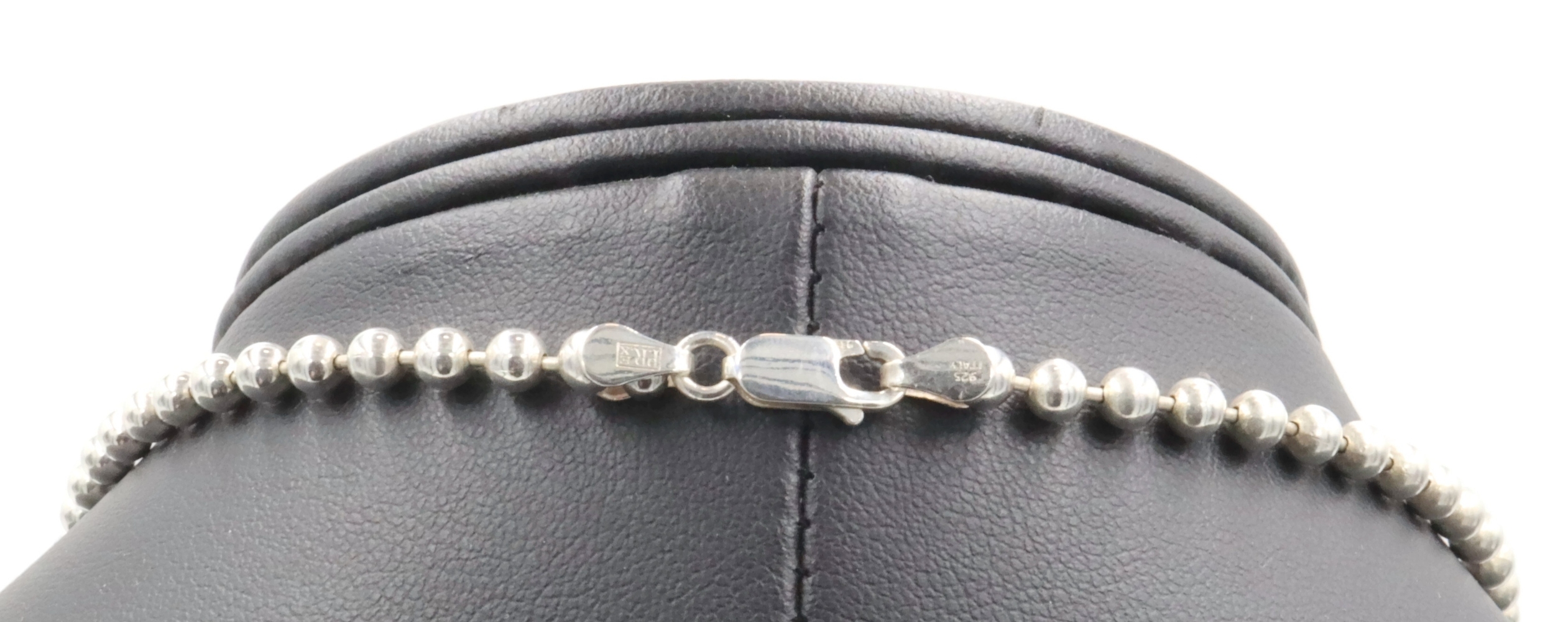 Classic Italy Sterling Silver (925) 4mm Ball Bead Chain 24" Necklace - 25.09g. This necklace is approximately 24 inches in length and 4mm in width.