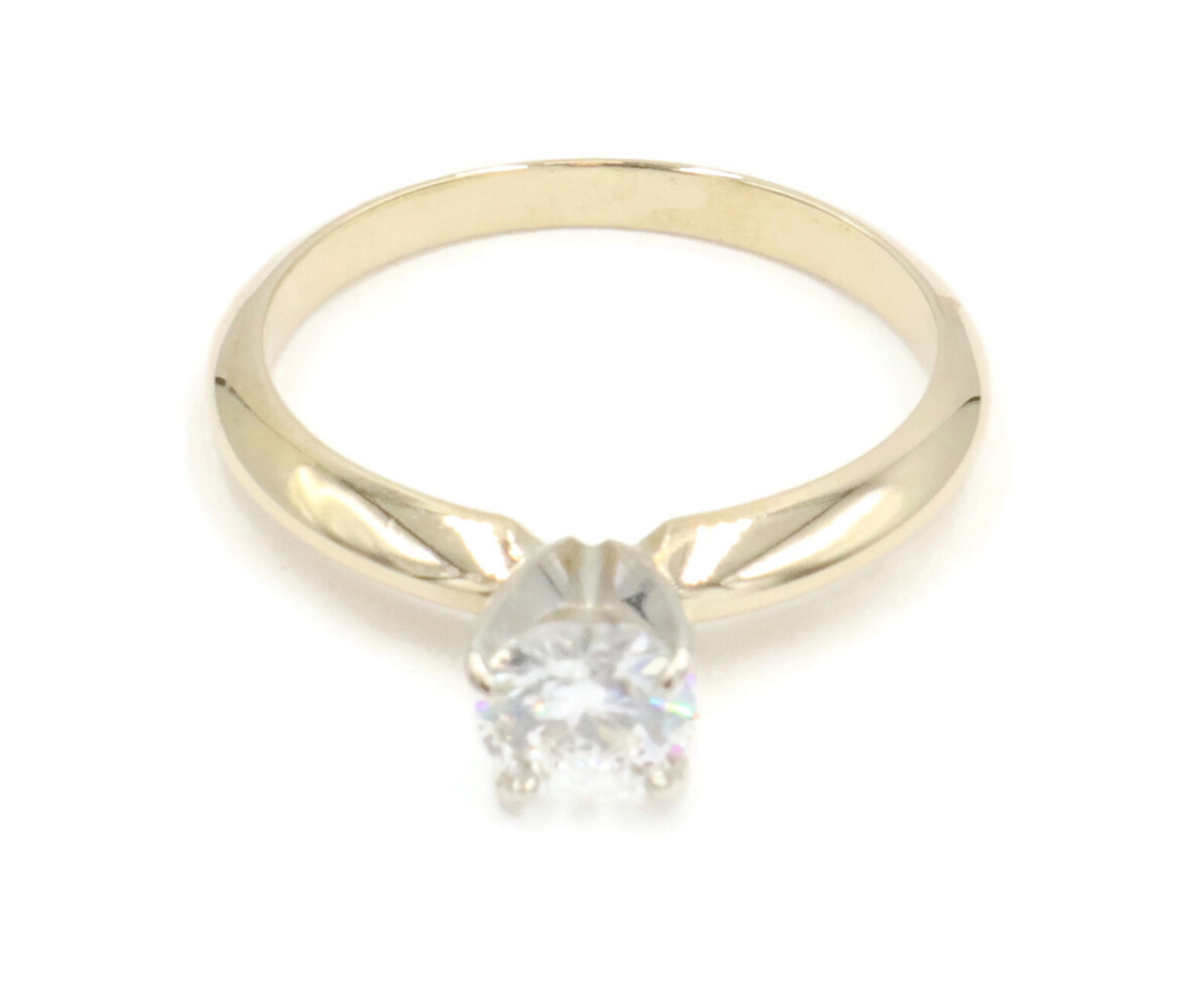 Classic Solitaire 0.46 Ct Round Diamond 14KT Yellow Gold Engagement Ring 2.15g. This ring is a size 5 3/4.