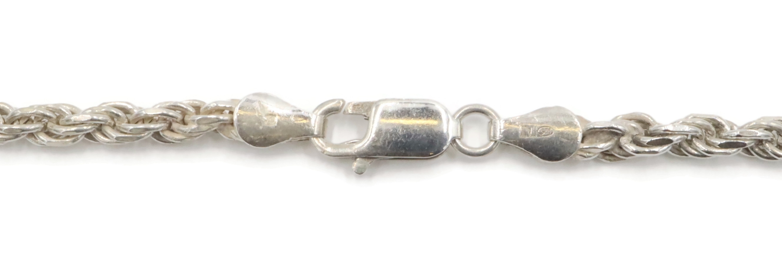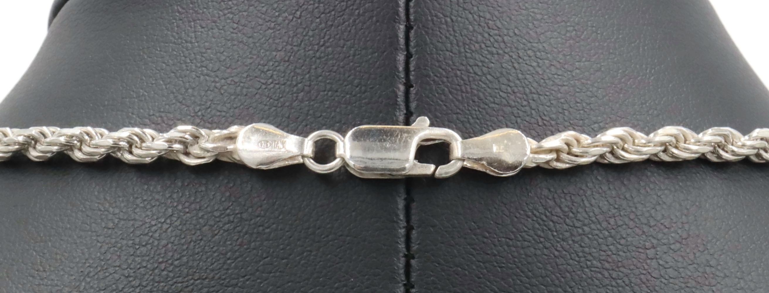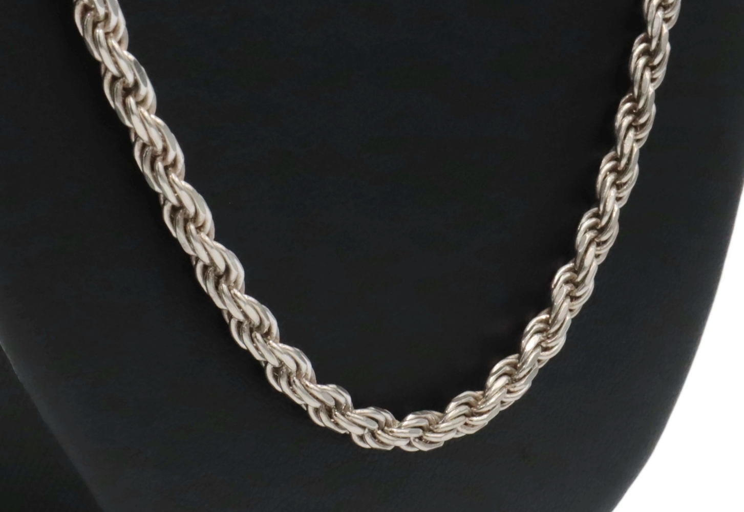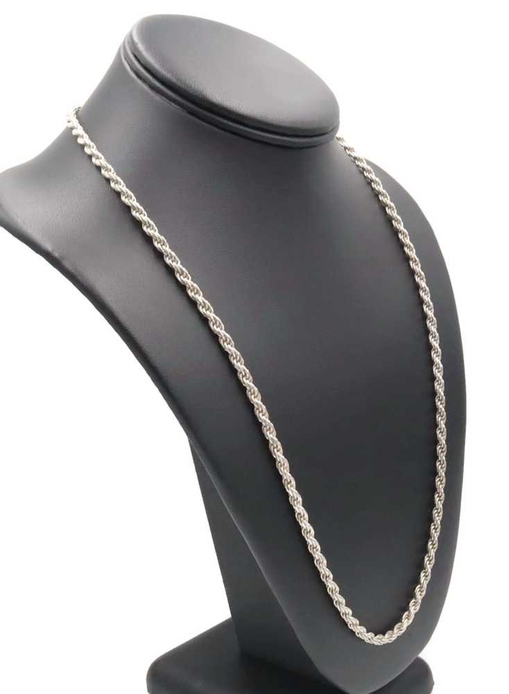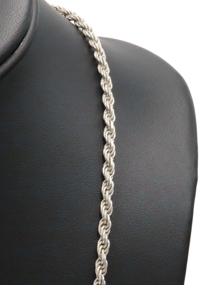 Classic Sterling Silver (925) 3.9mm Italy Rope Chain Necklace 24.5" JC - 28.99g. This necklace is approximately 24 1/2 inches in length and 3.9mm in width.