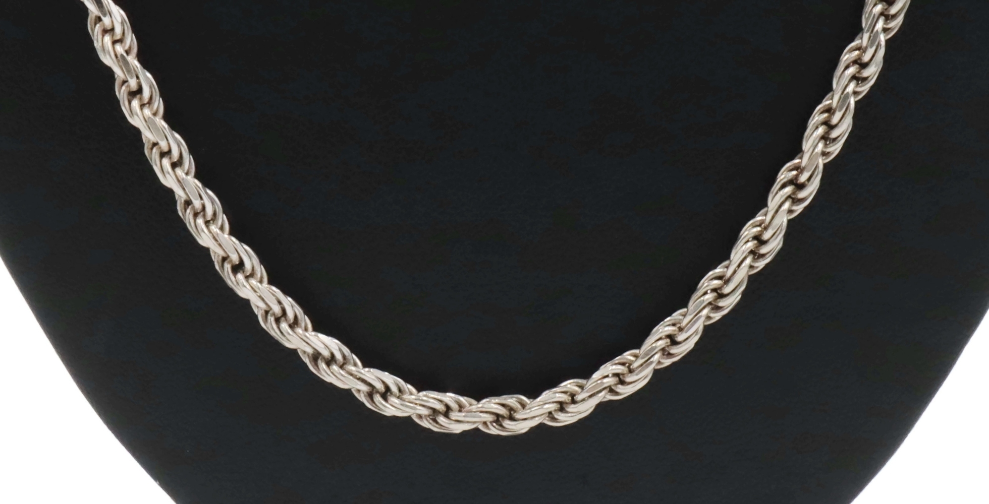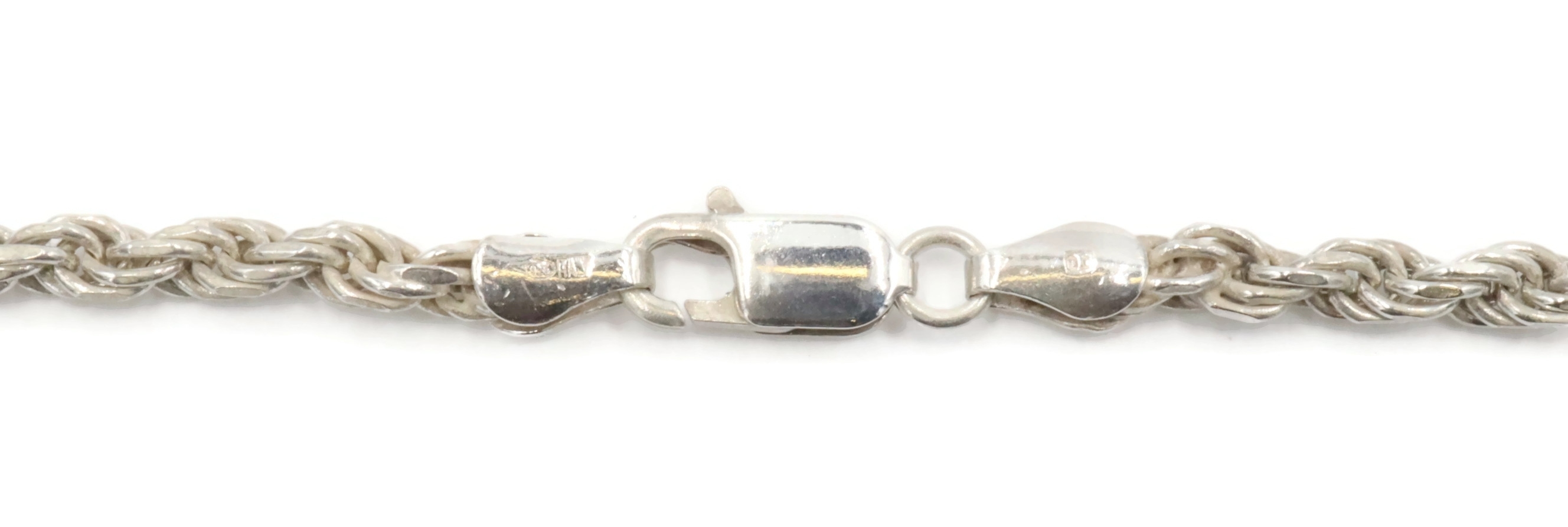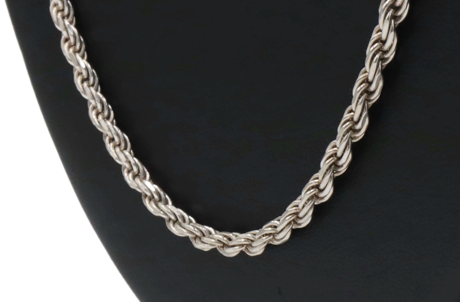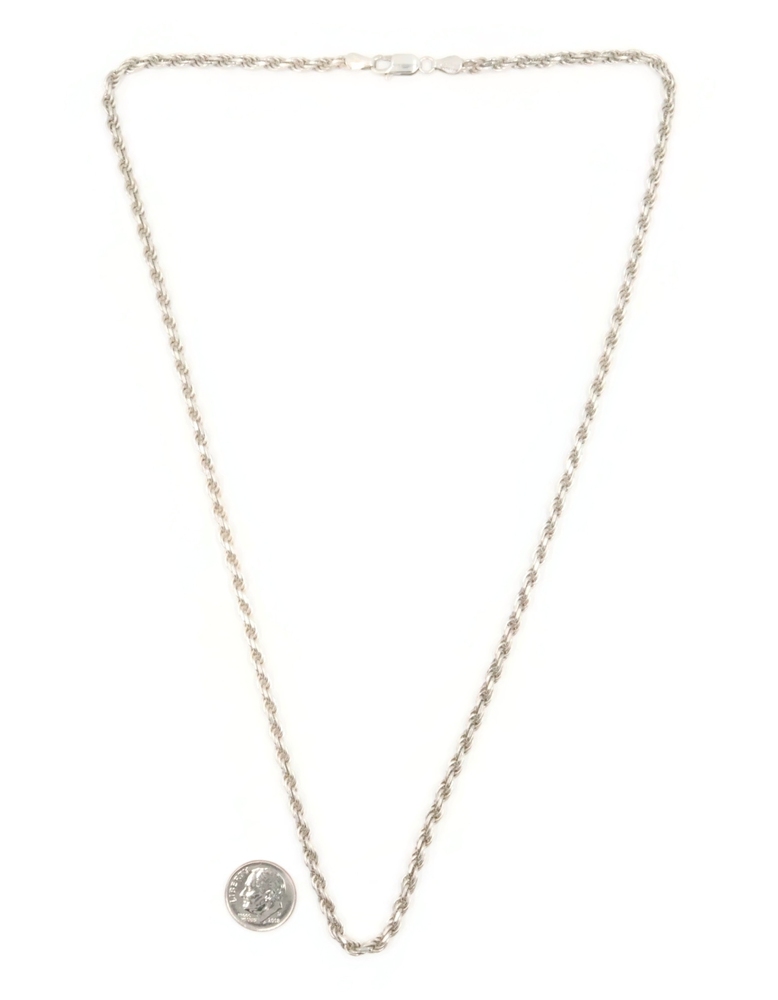Classic Sterling Silver (925) 3.9mm Italy Rope Chain Necklace 24.5" JC - 28.99g. This necklace is approximately 24 1/2 inches in length and 3.9mm in width.