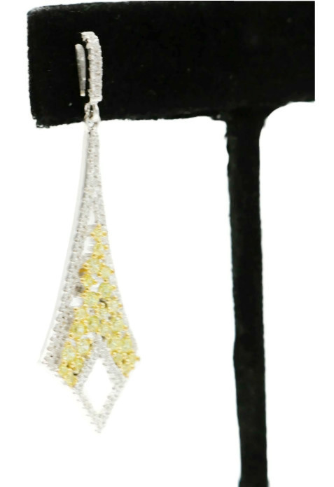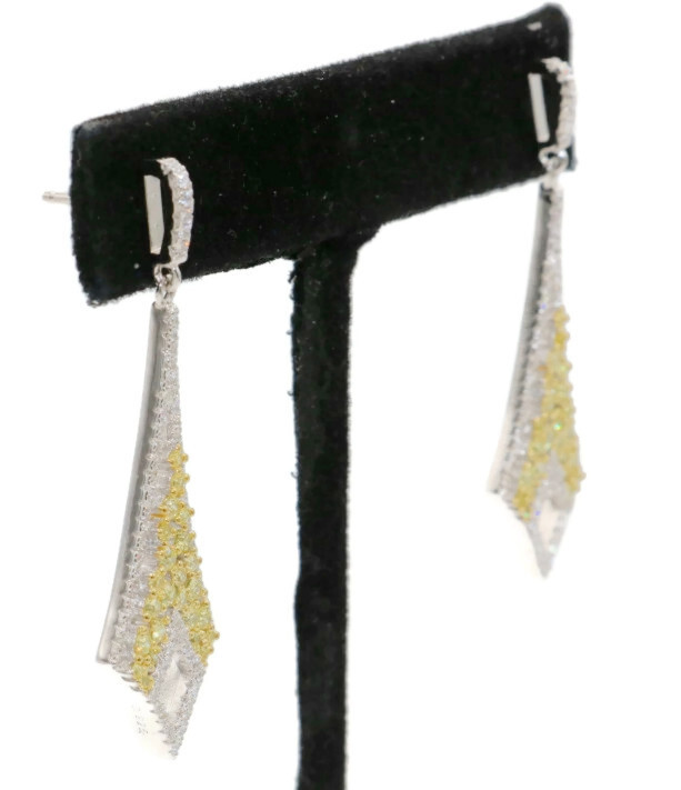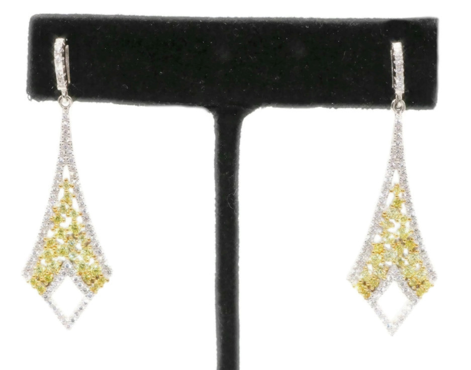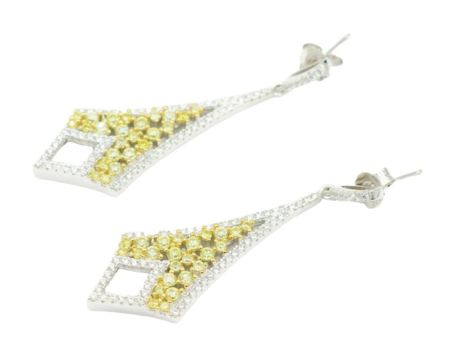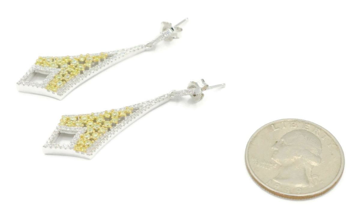 Classic Sterling Silver Long Yellow CZ 1 3/4" Art Deco Inspired Dangle Earrings | USA Pawn