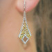 Classic Sterling Silver Long Yellow CZ 1 3/4" Art Deco Inspired Dangle Earrings