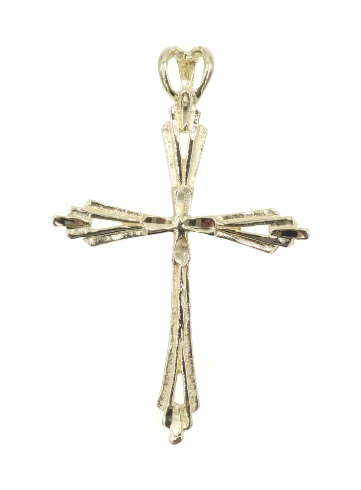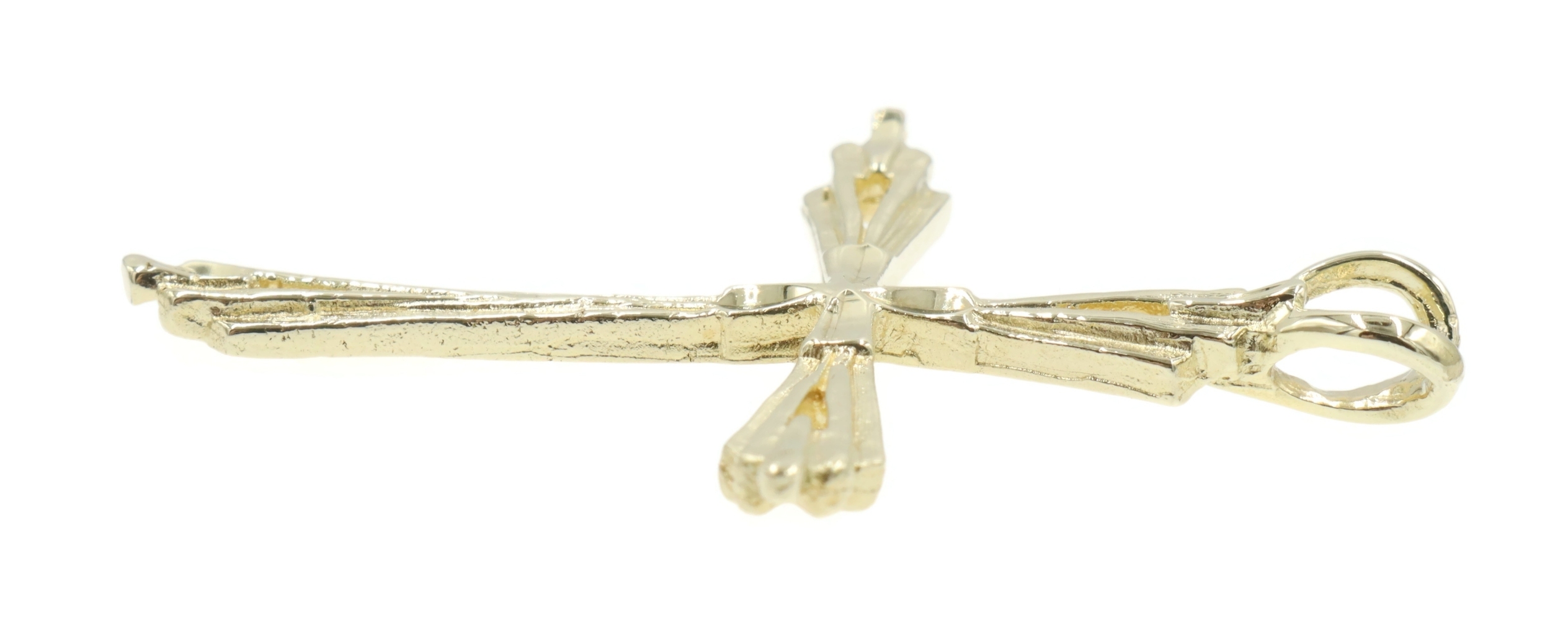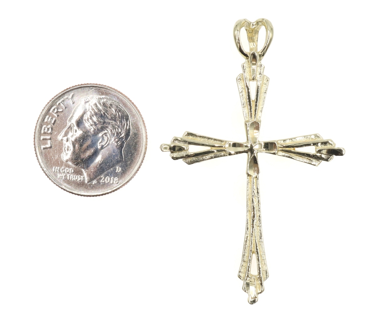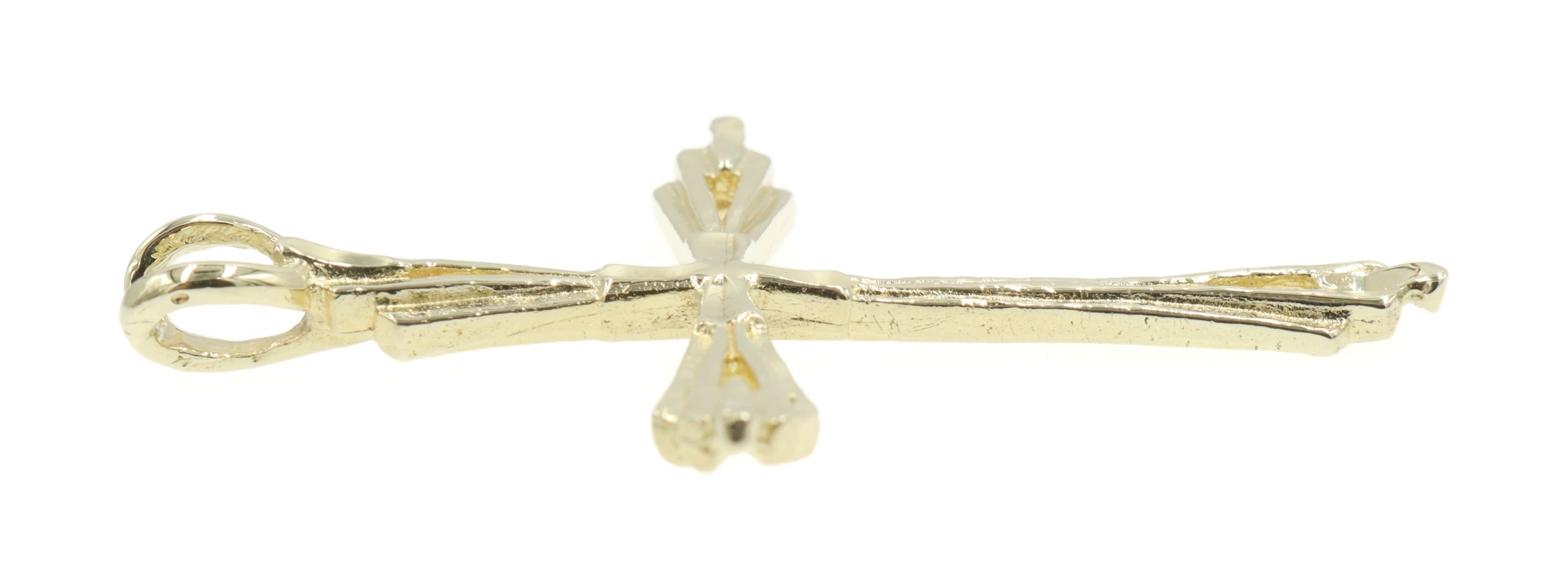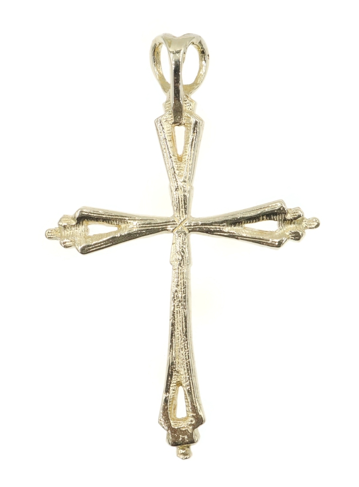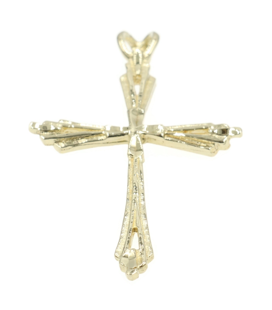 Classic Textured 10KT Yellow Gold Estate Diamond-Cut Cross Pendant 1.7" - 3.76g. This pendant is approximately 44.2mm in length (including the bail) and 28.7mm in width.
