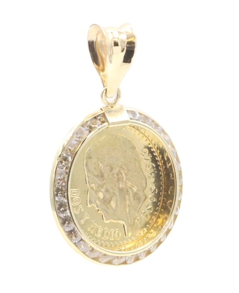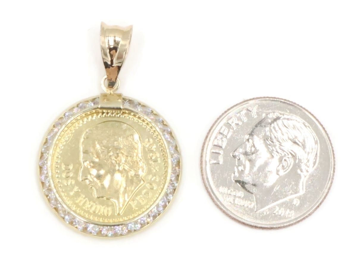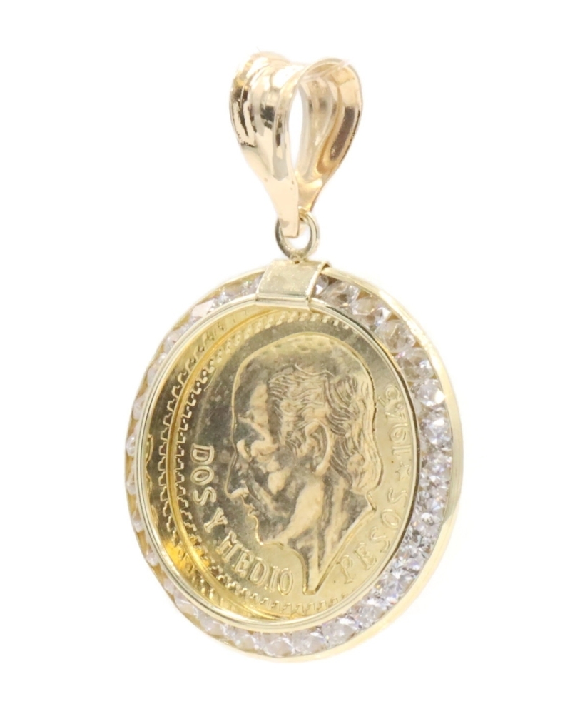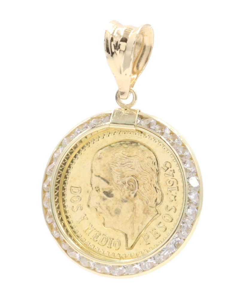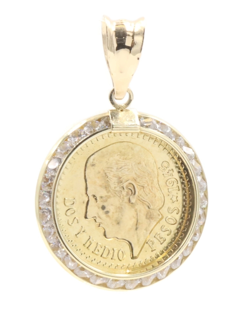 Copy 1945 Dos Y Medio Pesos Round Cubic Zirconia 14KT Yellow Gold Coin Pendant | USA Pawn