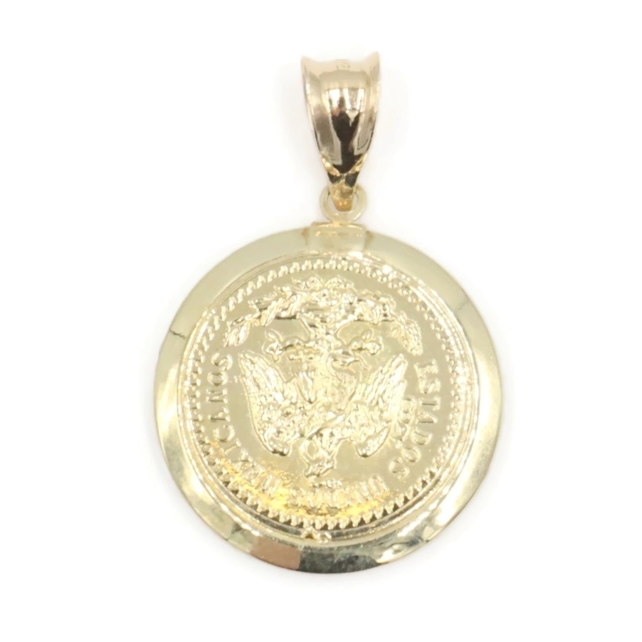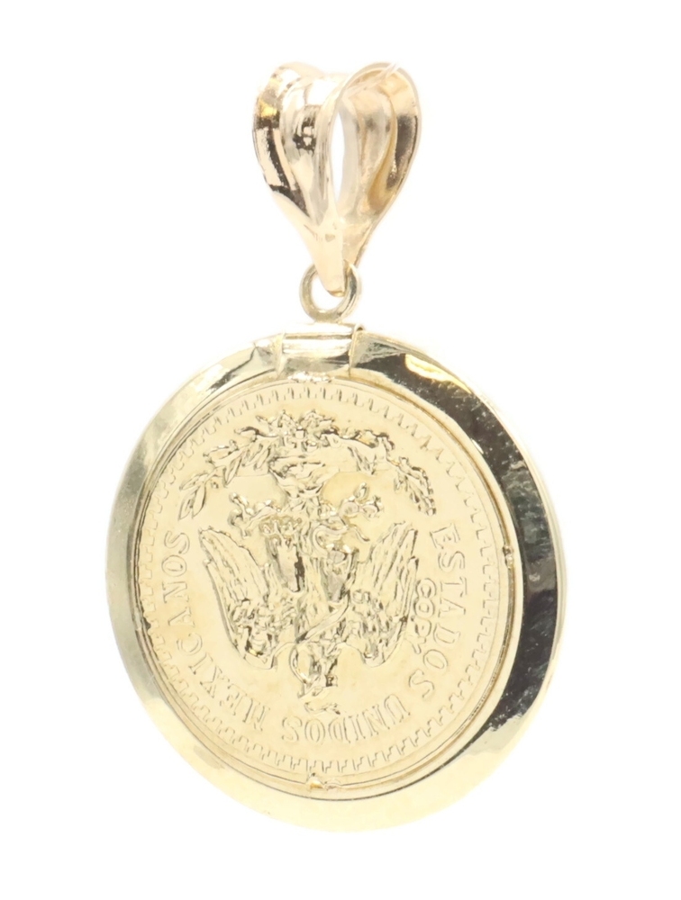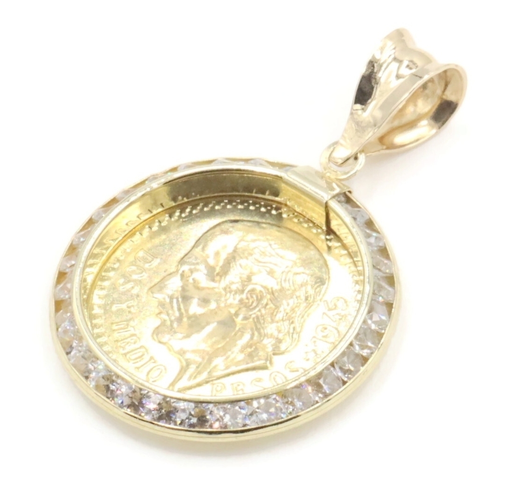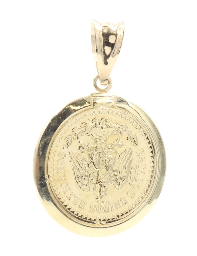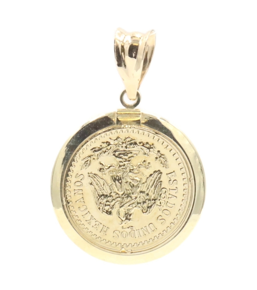 Copy 1945 Dos Y Medio Pesos Round Cubic Zirconia 14KT Yellow Gold Coin Pendant | USA Pawn