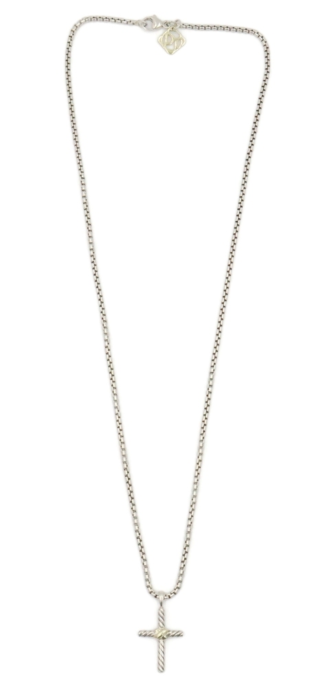 David Yurman 24mm Petite X Cross Necklace Sterling Silver & 14K Yellow Gold 16" | USA Pawn