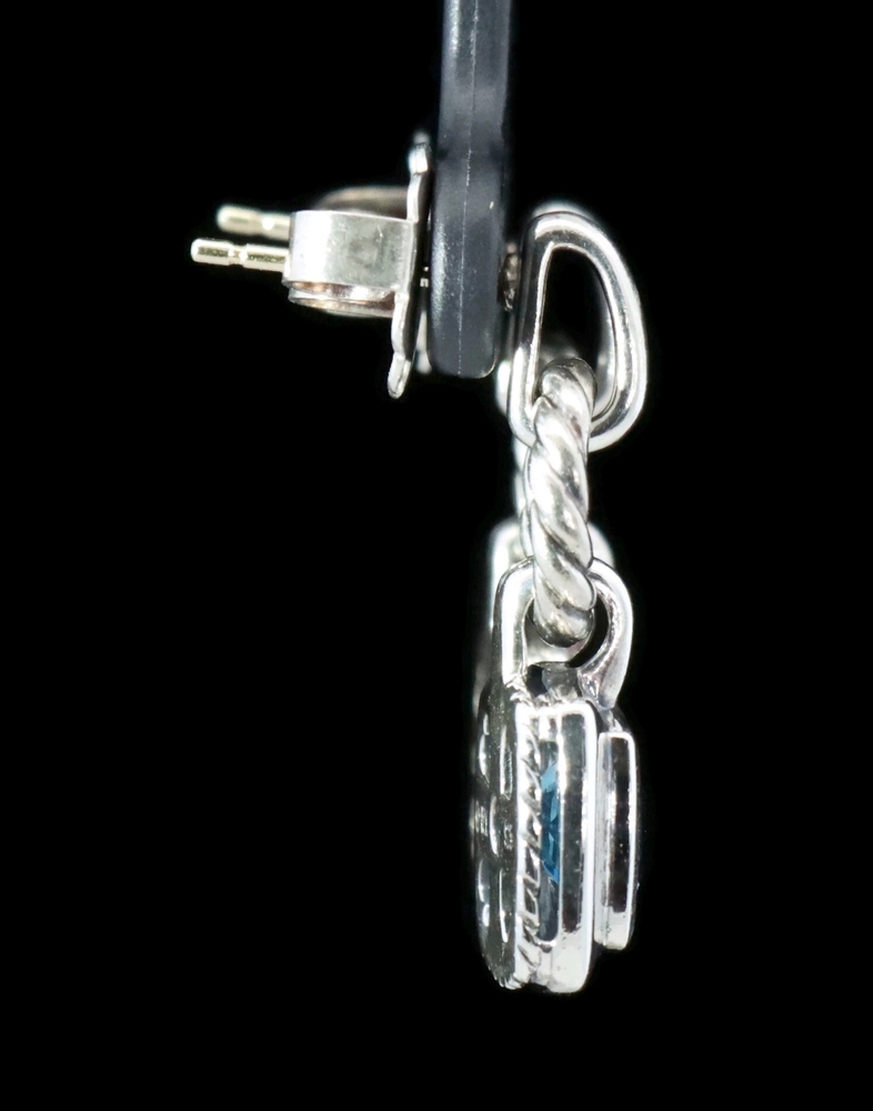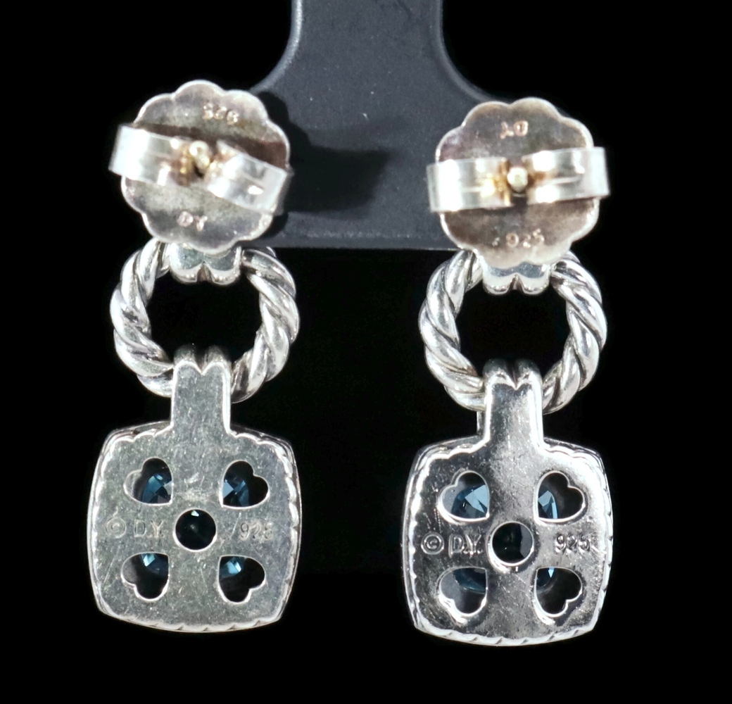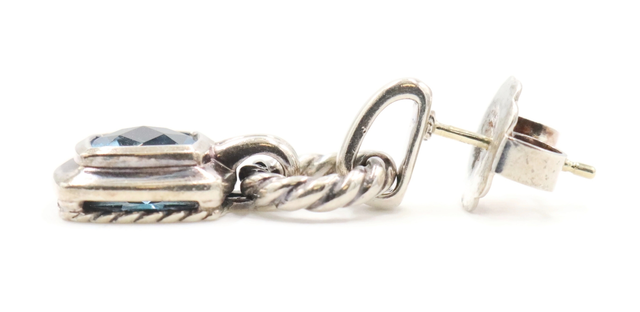 David Yurman Renaissance Blue Topaz Cushion Cut Sterling Silver Drop Earrings. These earrings come with 925 sterling silver David Yurman earring backs.
