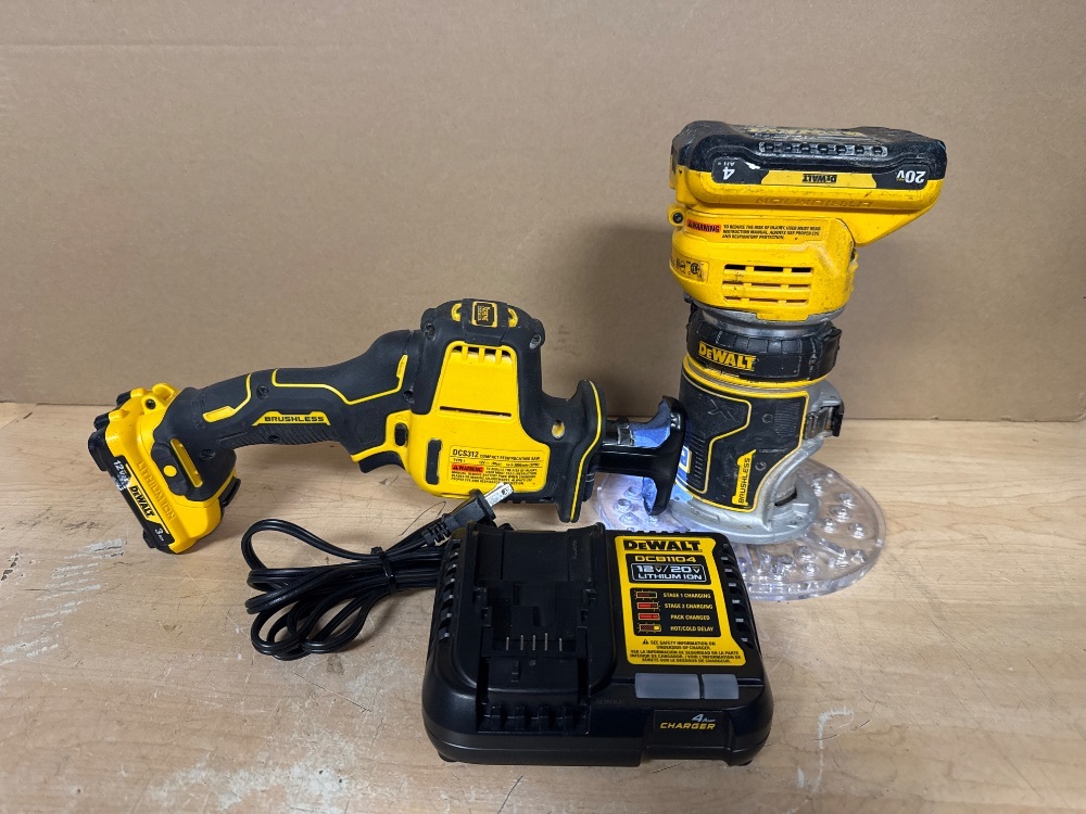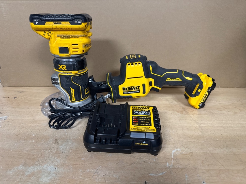 DEWALT COMBO KIT: DCS312 COMPACT RECIPROCATING SAW / DCW600 COMPACT ROUTER / 2 BATTERIES / CHARGER