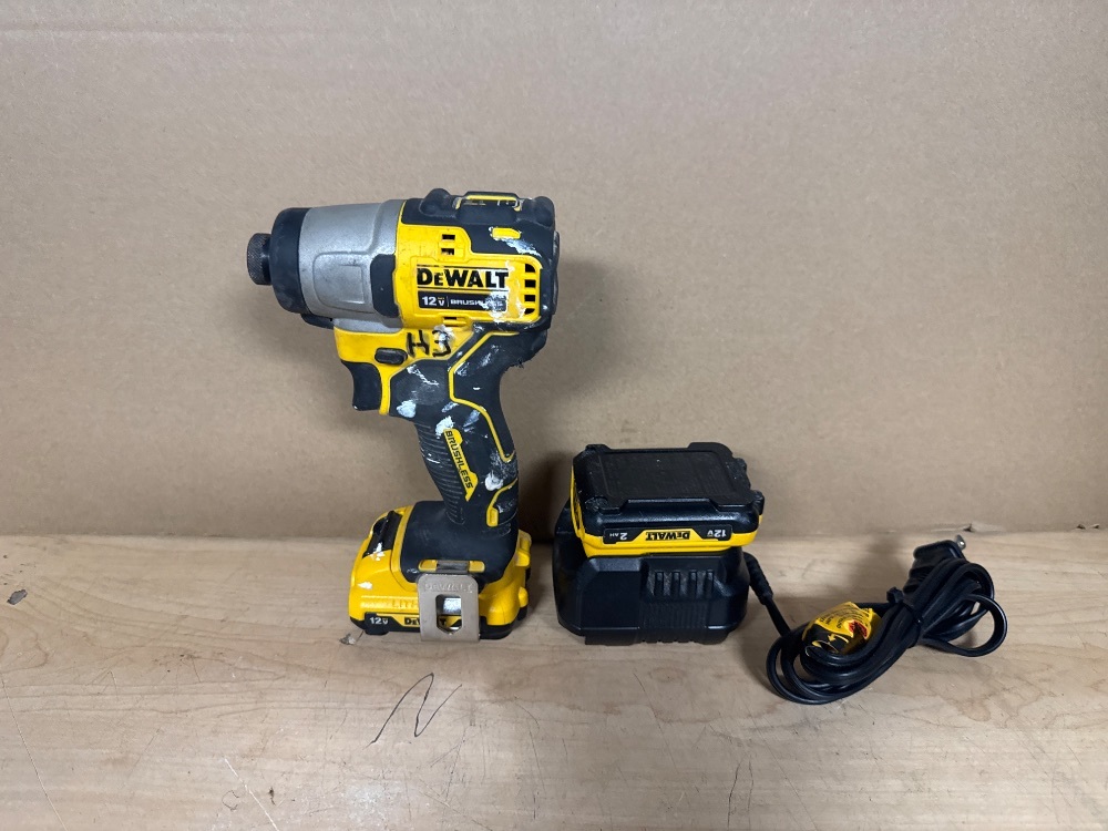 DEWALT DCF801 / 1/4" IMPACT DRIVER / (2) 12V BATTERIES / CHARGER
