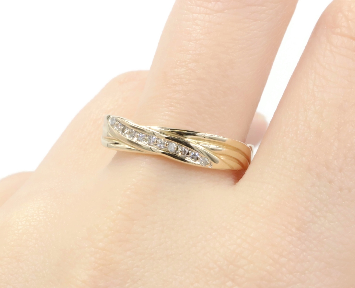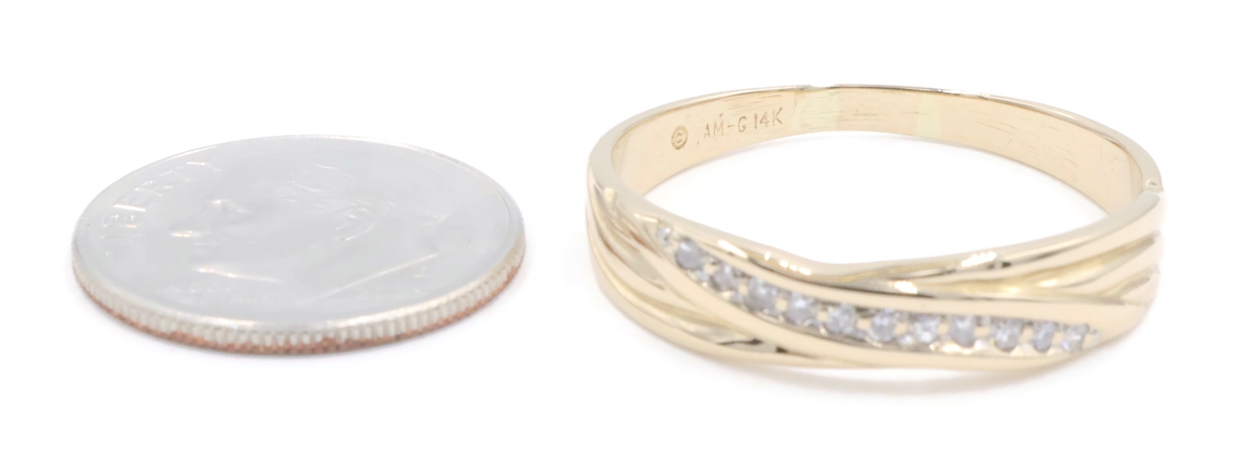 Diagonal 0.16 Ctw Single Cut Diamond 14KT Yellow Gold Wedding Band Ring AM-G | USA Pawn