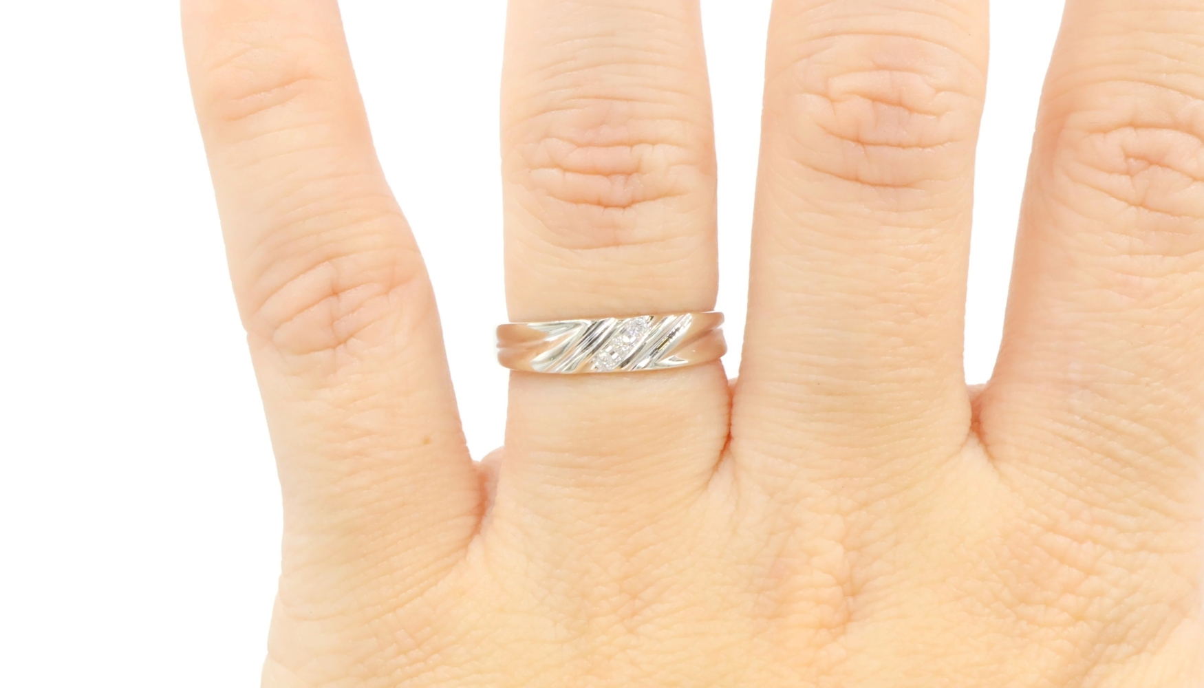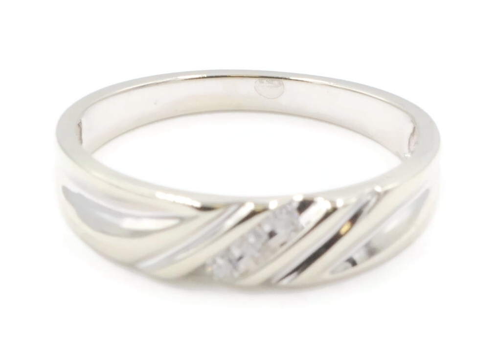 Diagonal Channel 0.04 ctw Round Diamond 10KT White Gold Wedding Ring - 1.84g | USA Pawn
